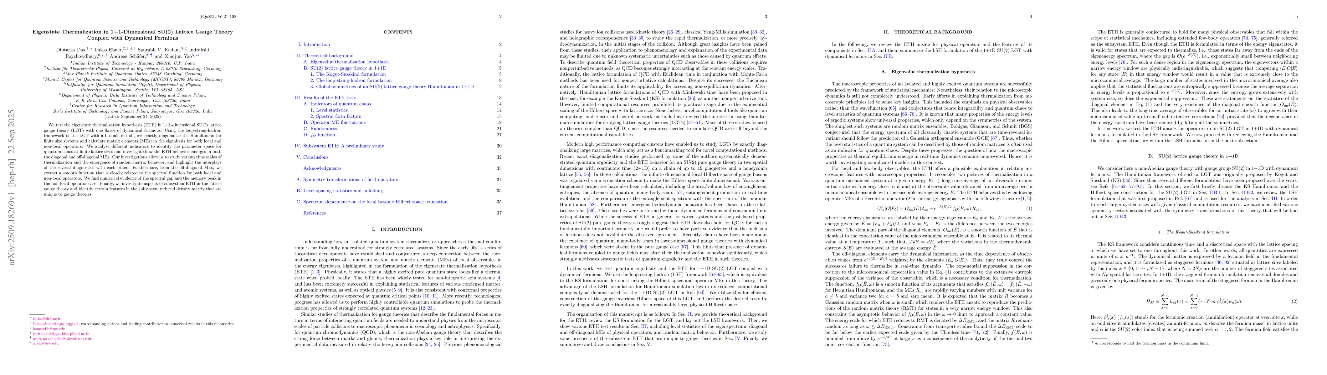 We present preliminary numerical evidence for the hypothesis that the Hamiltonian SU(2) gauge theory discretized on a lattice obeys the Eigenstate Thermalization Hypothesis (ETH). To do so we study ...