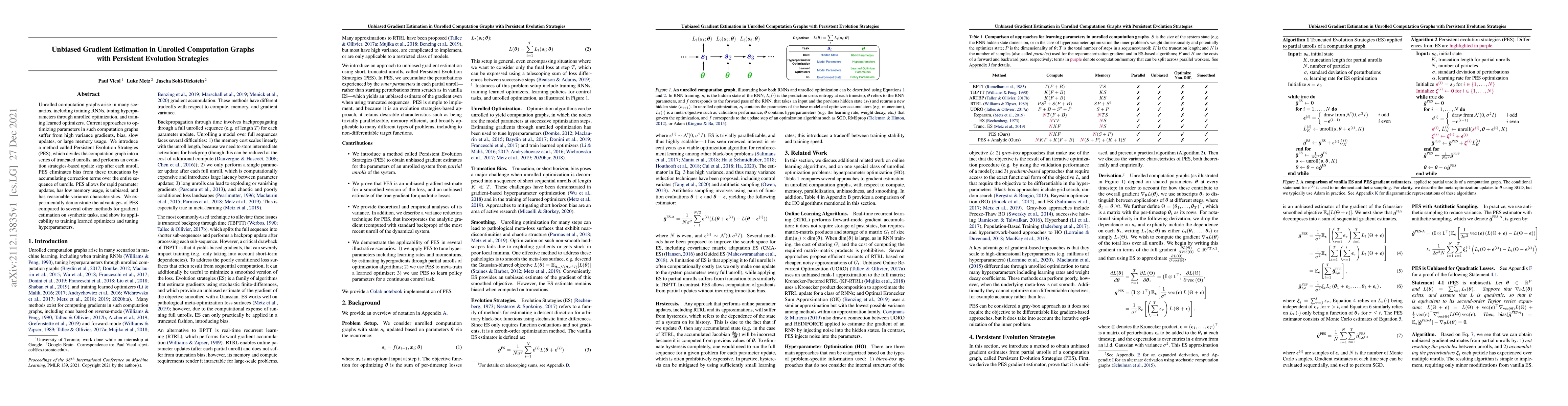 Unrolled computation graphs arise in many scenarios, including training RNNs, tuning hyperparameters through unrolled optimization, and training learned optimizers. Current approaches to optimizing ...