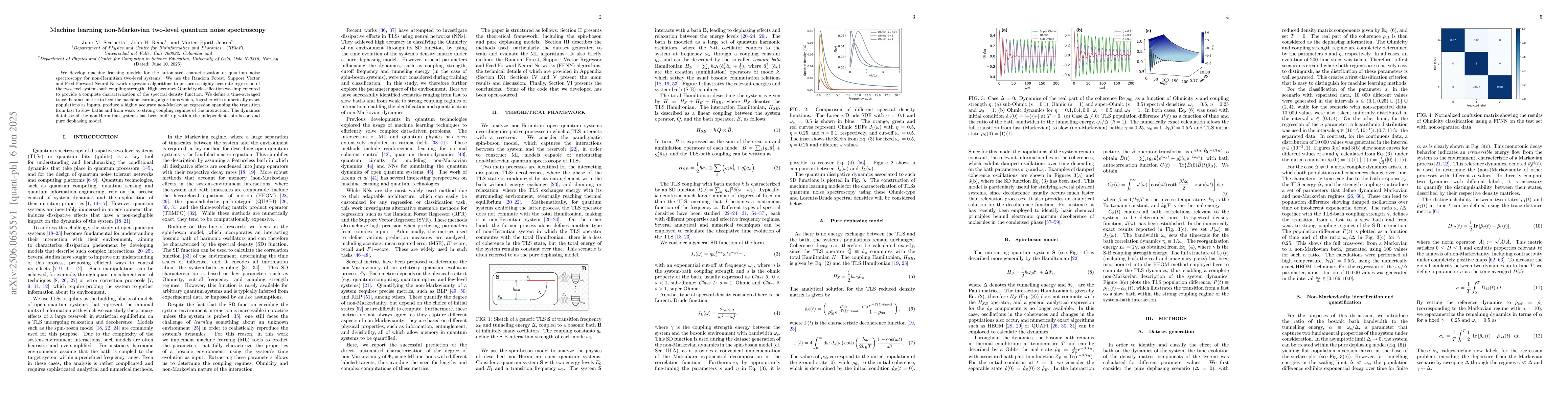 We develop machine learning models for the automated characterization of quantum noise spectroscopy for non-Hermitian two-level systems. We use the Random Forest, Support Vector and Feed-Forward Neura...