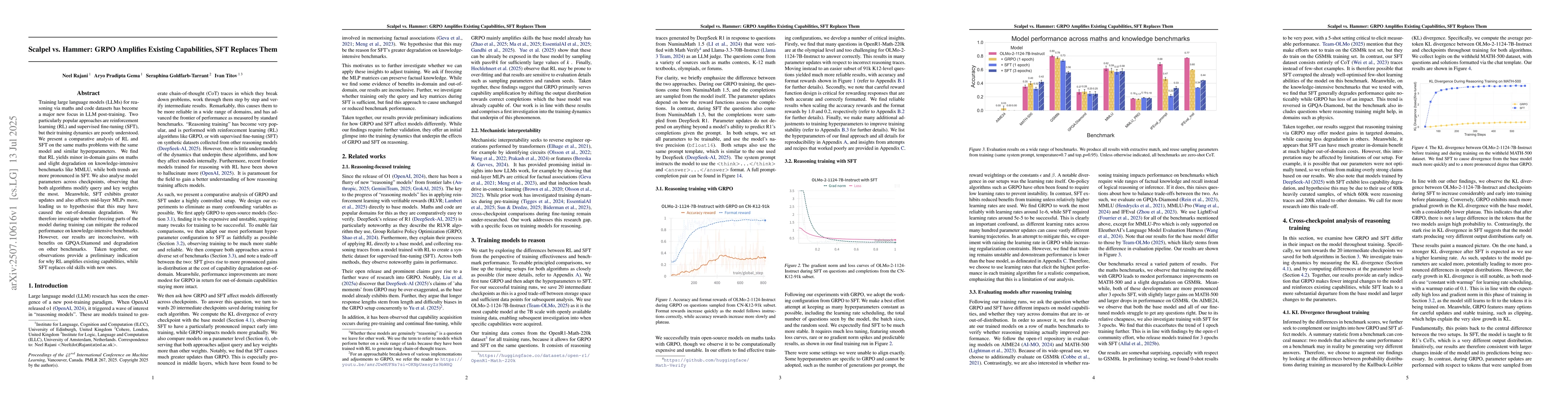 Training large language models (LLMs) for reasoning via maths and code datasets has become a major new focus in LLM post-training. Two particularly popular approaches are reinforcement learning (RL) a...