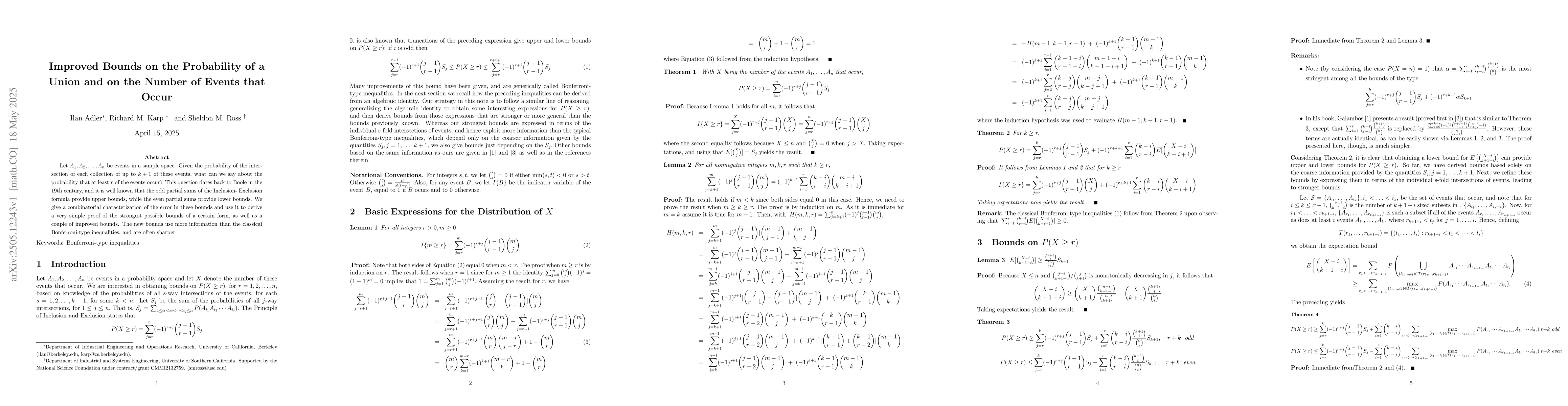 Let $A_1, A_2, \ldots, A_n$ be events in a sample space. Given the probability of the intersection of each collection of up to $k+1$ of these events, what can we say about the probability that at leas...