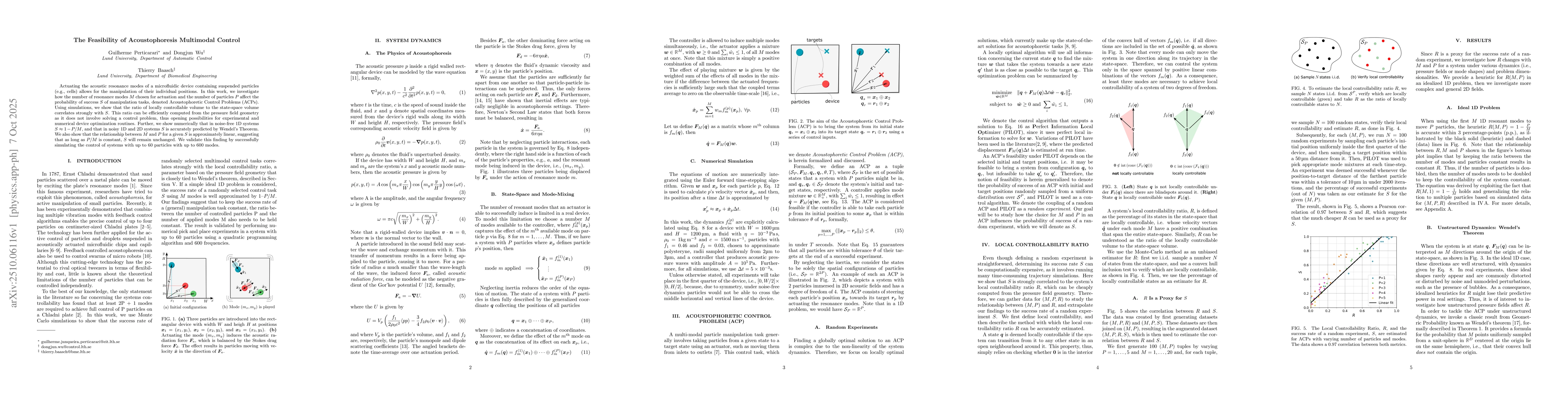 Acoustic manipulation in microfluidic devices enables contactless handling of biological cells for Lab-on-Chip applications. This paper analyzes the controllability of multi-particle systems in a one-...