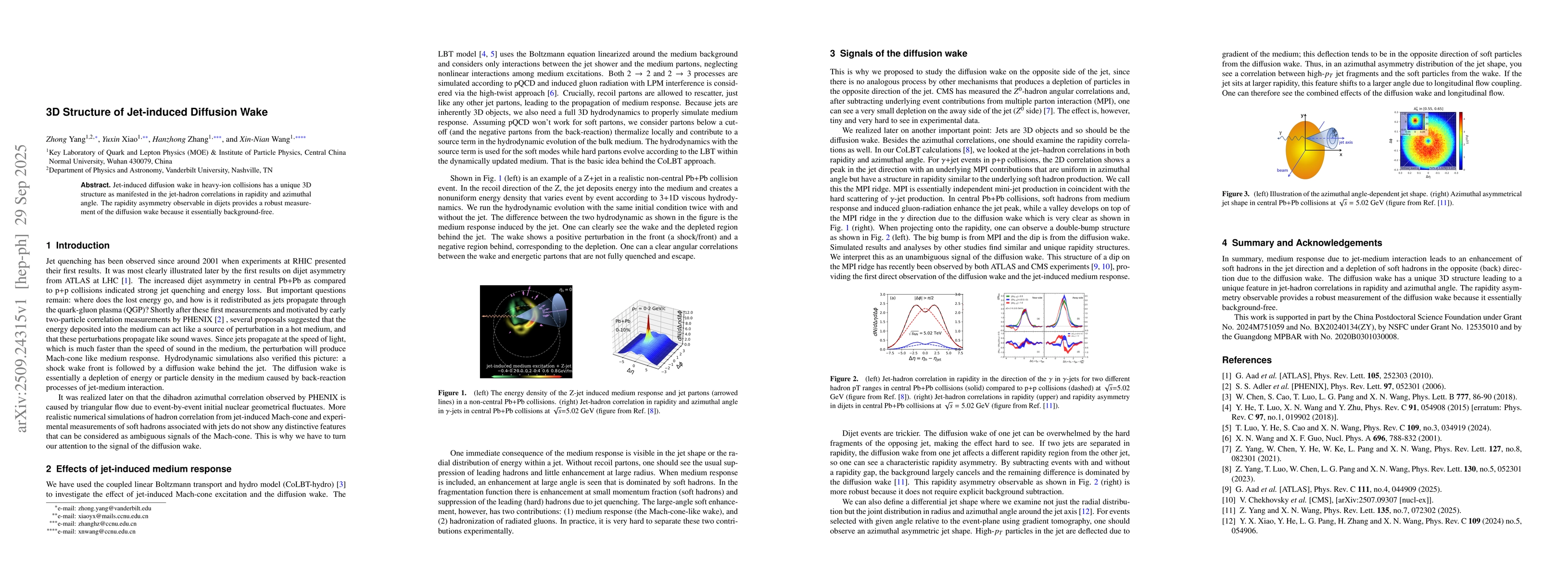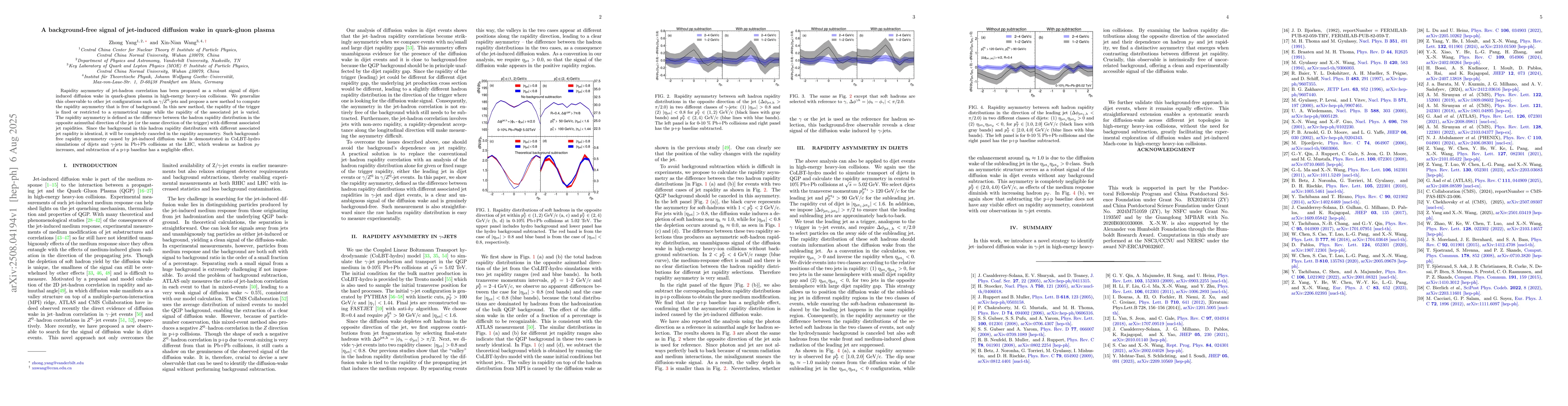 Jet-induced diffusion wake in heavy-ion collisions has a unique 3D structure as manifested in the jet-hadron correlations in rapidity and azimuthal angle. The rapidity asymmetry observable in dijets p...