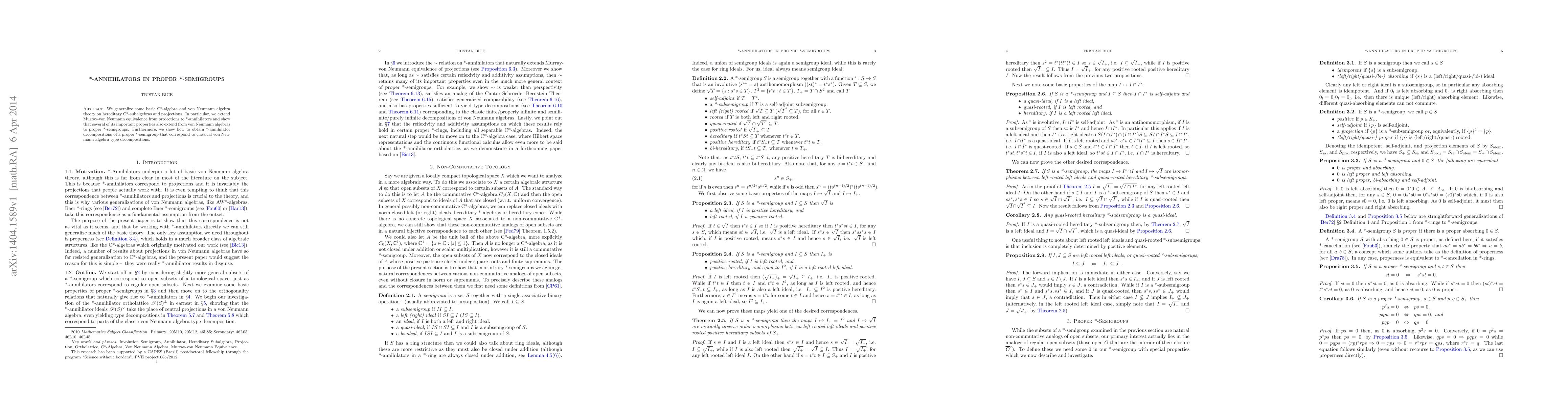 We generalize some basic C*-algebra and von Neumann algebra theory on hereditary C*-subalgebras and projections. In particular, we extend Murray-von Neumann equivalence from projections to *-annihilators and show that several of its important properties also extend from von Neumann algebras to proper *-semigroups. Furthermore, we show how to obtain *-annihilator decompositions of a proper *-semigroup that correspond to classical von Neumann algebra type decompositions.