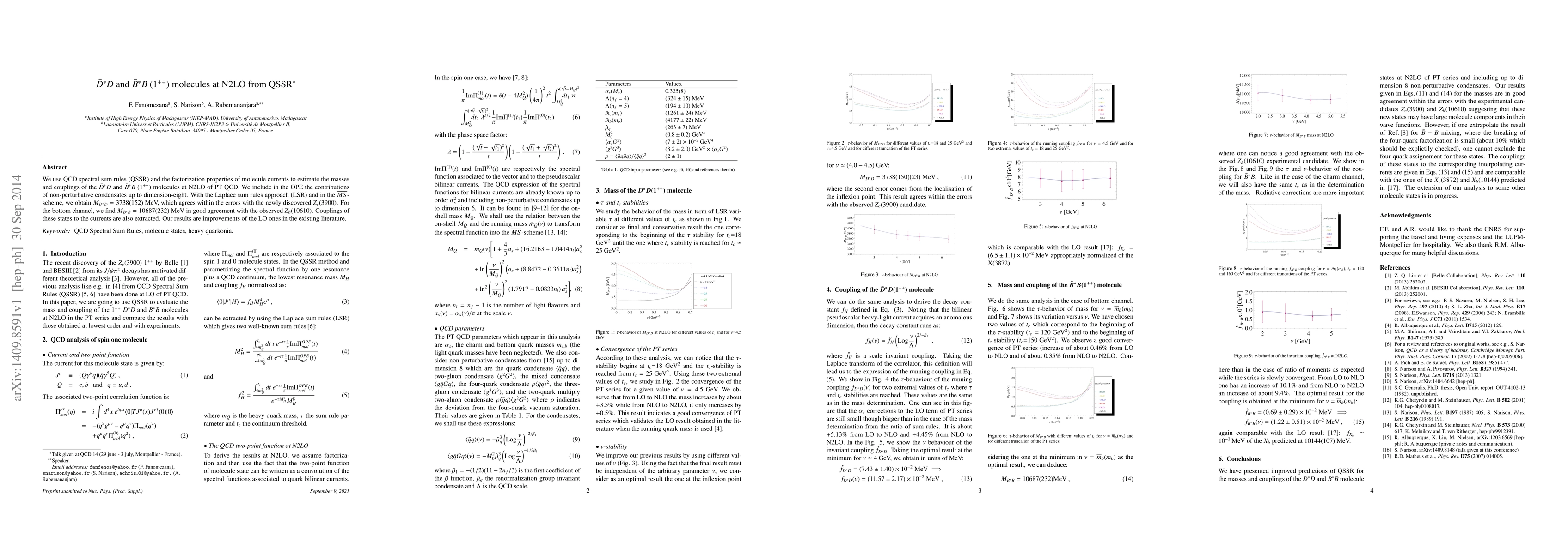 We use QCD spectral sum rules (QSSR) and the factorization properties of molecule currents to estimate the masses and couplings of the $\bar D^*D$ and $\bar B^*B~(1^{++})$ molecules at N2LO of PT QCD. We include in the OPE the contributions of non-perturbative condensates up to dimension-eight. With the Laplace sum rules approach (LSR) and in the $\overline{MS}$-scheme, we obtain $M_{D^*D}=3738(152)$ MeV, which agrees within the errors with the newly discovered $Z_c$(3900). For the bottom channel, we find $M_{B^*B}=10687(232)$ MeV in good agreement with the observed $Z_b$(10610). Couplings of these states to the currents are also extracted. Our results are improvements of the LO ones in the existing literature.