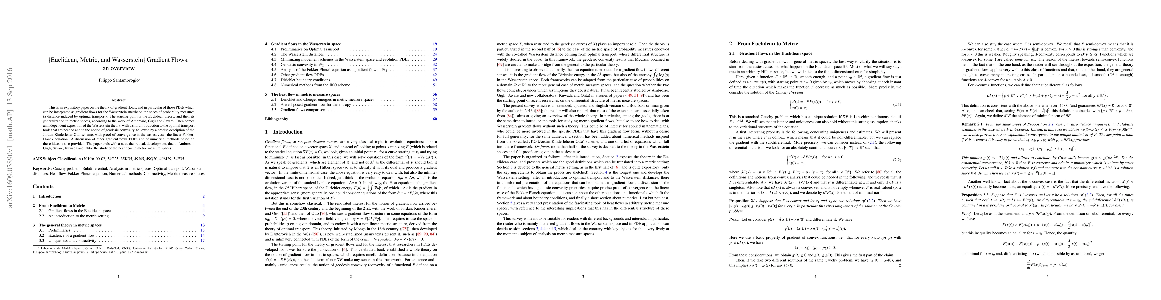 This paper provides an overview of gradient flows, starting from Euclidean theory and extending to metric spaces and Wasserstein gradients, including optimal transport tools and the Jordan-Kinderleher-Otto scheme. It concludes with a discussion on the heat flow in metric measure spaces, based on recent developments by Ambrosio, Gigli, Savaré, Kudawa, and Ohta.