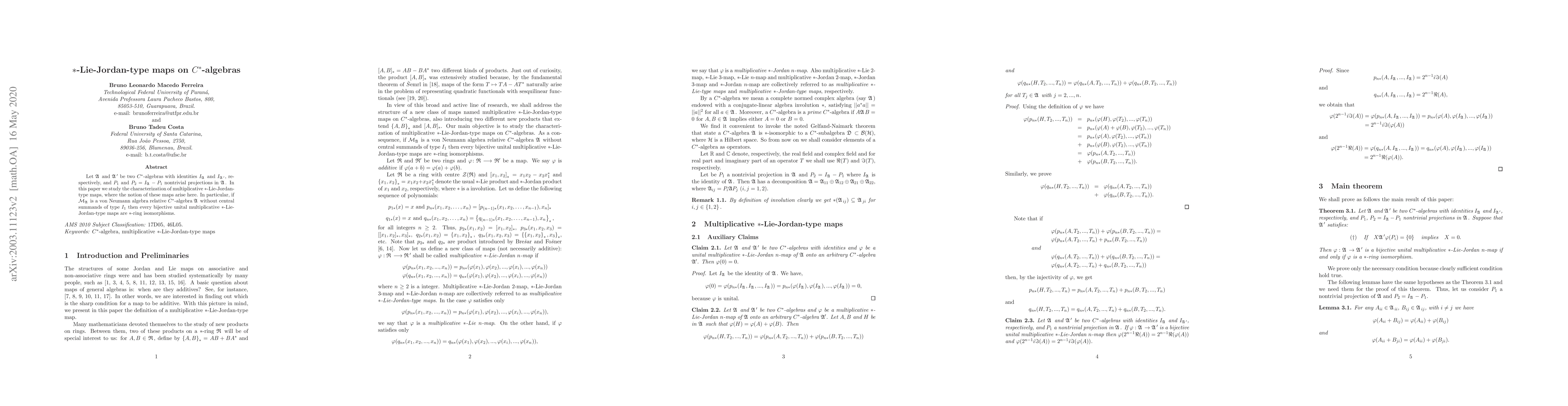Title: $*$-Lie-Jordan-type maps on $C^{*}$-algebras Summary: This paper characterizes bijective unital multiplicative star-Lie-Jordan-type maps on $C^{*}$-algebras, showing that they are star-ring isomorphisms in the absence of central summands of type I_1 within von Neumann algebras relative to $C^{*}$-algebras.