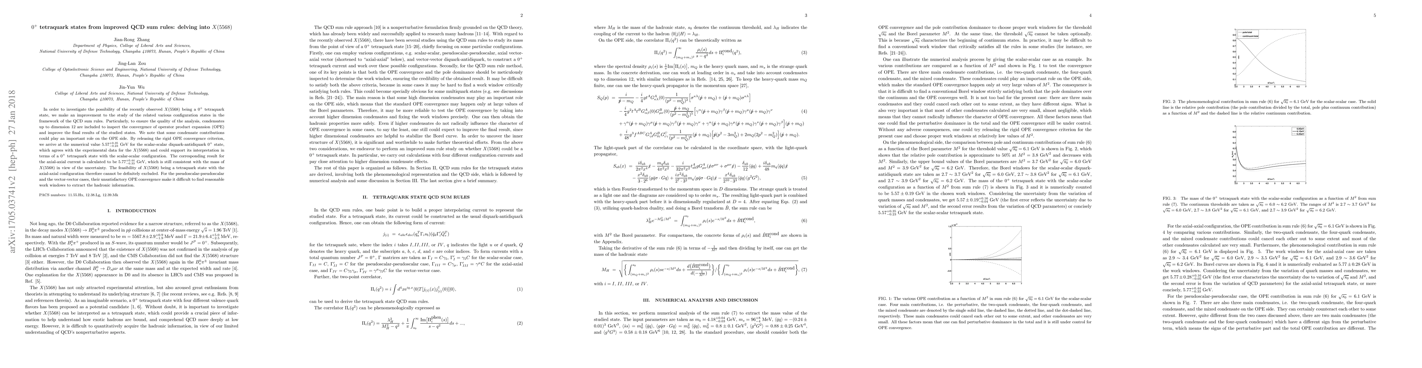 In order to investigate the possibility of the recently observed $X(5568)$ being a $0^{+}$ tetraquark state, we make an improvement to the study of the related various configuration states in the framework of the QCD sum rules. Particularly, to ensure the quality of the analysis, condensates up to dimension $12$ are included to inspect the convergence of operator product expansion (OPE) and improve the final results of the studied states. We note that some condensate contributions could play an important role on the OPE side. By releasing the rigid OPE convergence criterion, we arrive at the numerical value $5.57^{+0.35}_{-0.23}~\mbox{GeV}$ for the scalar-scalar diquark-antidiquark $0^{+}$ state, which agrees with the experimental data for the $X(5568)$ and could support its interpretation in terms of a $0^{+}$ tetraquark state with the scalar-scalar configuration. The corresponding result for the axial-axial current is calculated to be $5.77^{+0.44}_{-0.33}~\mbox{GeV}$, which is still consistent with the mass of $X(5568)$ in view of the uncertainty. The feasibility of $X(5568)$ being a tetraquark state with the axial-axial configuration therefore cannot be definitely excluded. For the pseudoscalar-pseudoscalar and the vector-vector cases, their unsatisfactory OPE convergence make it difficult to find reasonable work windows to extract the hadronic information.