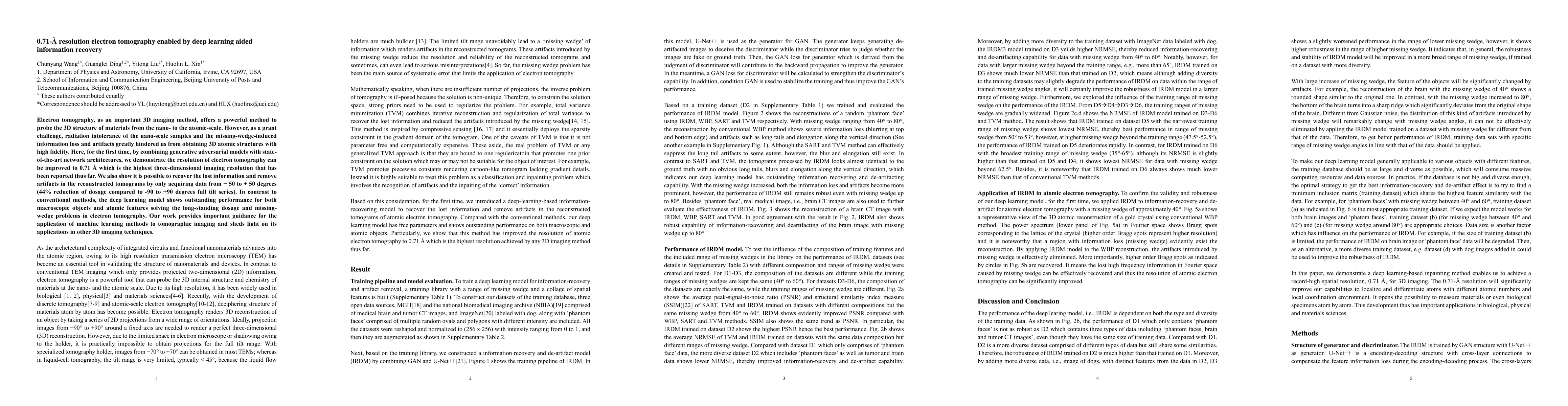 Researchers improved electron tomography resolution to 0.71 angstrom using deep learning and reduced data acquisition time by 44% while maintaining high image quality.