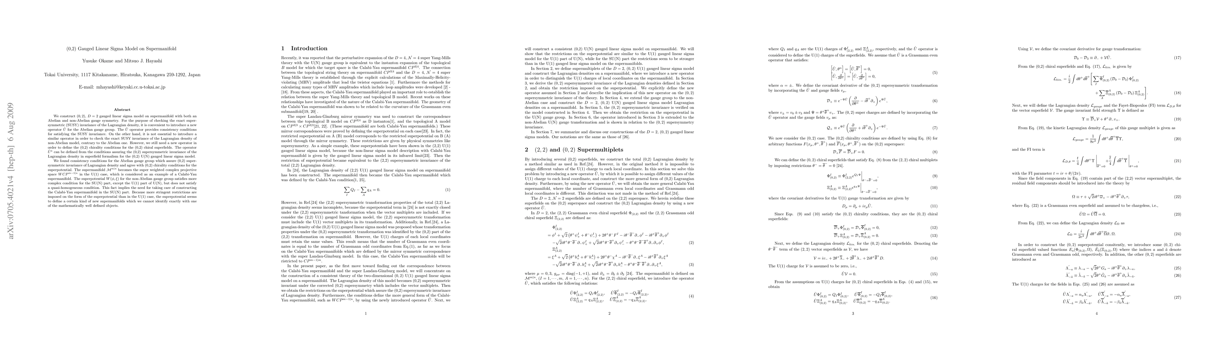 This research constructs a (0,2) gauged linear sigma model on a supermanifold for both Abelian and non-Abelian gauge groups. It utilizes the $\hat{U}$ operator to maintain SUSY invariance, showing that this operator is crucial for defining (0,2) chiral superfields.