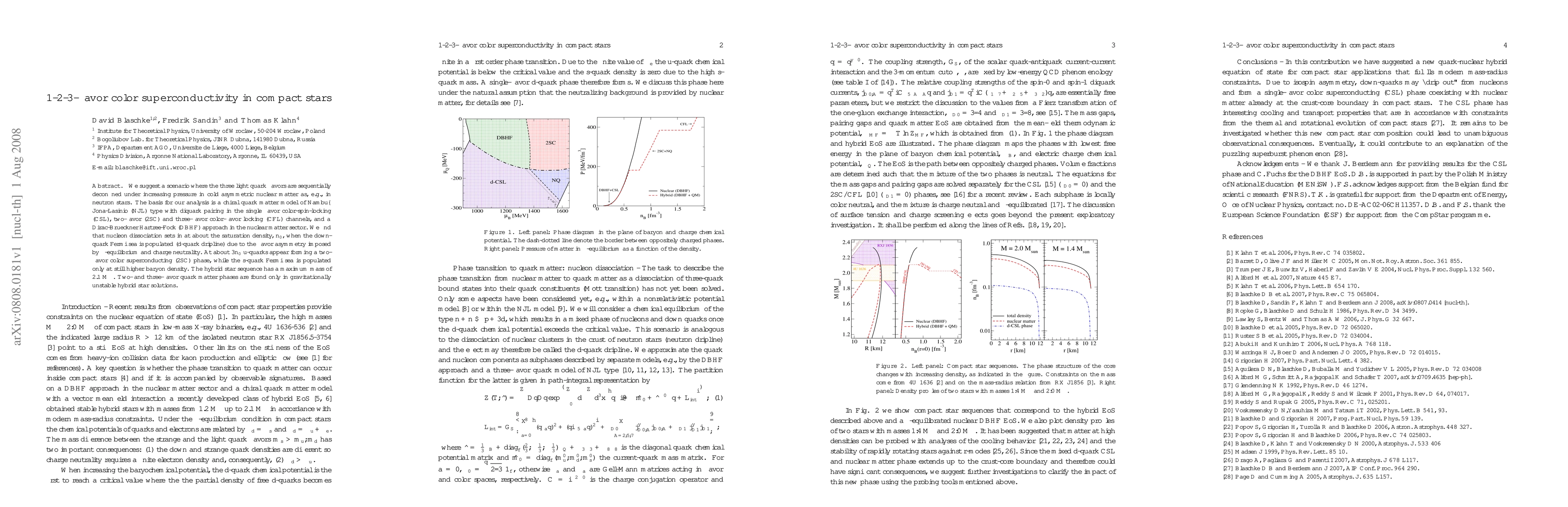 We suggest a scenario where the three light quark flavors are sequentially deconfined under increasing pressure in cold asymmetric nuclear matter, e.g., as in neutron stars. The basis for our analysis is a chiral quark matter model of Nambu--Jona-Lasinio (NJL) type with diquark pairing in the spin-1 single flavor (CSL) and spin-0 two/three flavor (2SC/CFL) channels, and a Dirac-Brueckner Hartree-Fock (DBHF) approach in the nuclear matter sector. We find that nucleon dissociation sets in at about the saturation density, n_0, when the down-quark Fermi sea is populated (d-quark dripline) due to the flavor asymmetry imposed by beta-equilibrium and charge neutrality. At about 3n_0 u-quarks appear forming a two-flavor color superconducting (2SC) phase, while the s-quark Fermi sea is populated only at still higher baryon density. The hybrid star sequence has a maximum mass of 2.1 M_sun. Two- and three-flavor quark matter phases are found only in gravitationally unstable hybrid star solutions.
