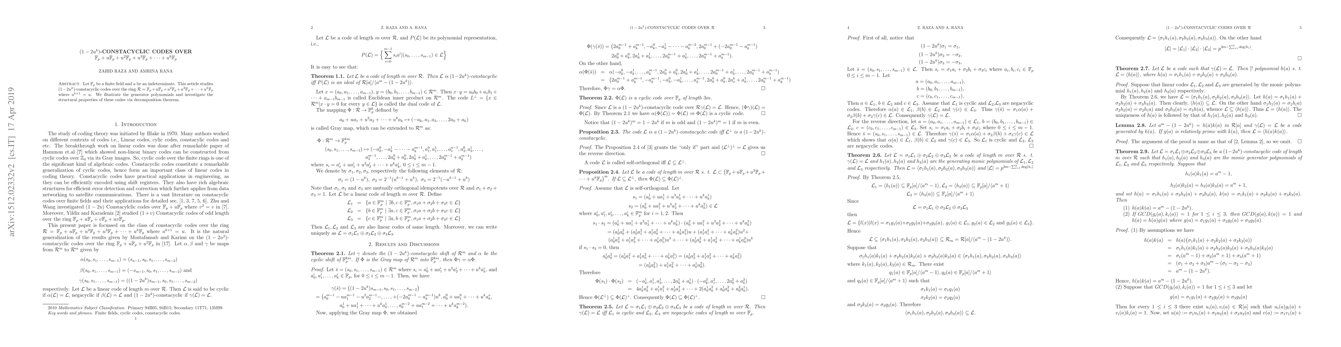 This paper examines $(1-2u^k)$-constacyclic codes over the ring $\mathcal{R}$ formed by finite field $\mathbb{F}_p$ extended with powers of an indeterminate $u$. It analyzes the structural properties and generator polynomials using a decomposition theorem.