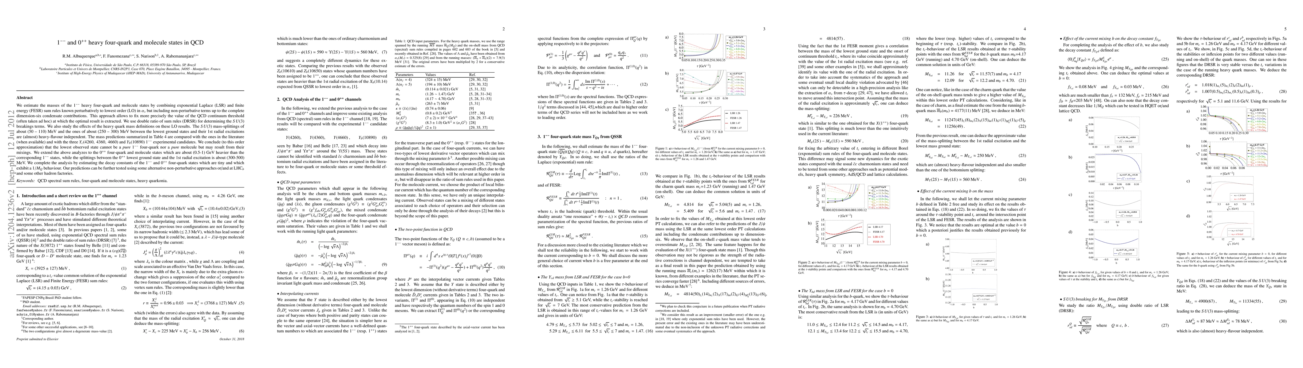We estimate the masses of the 1^{--} heavy four-quark and molecule states by combining exponential Laplace (LSR) and finite energy (FESR) sum rules known perturbatively to lowest order (LO) in alpha_s but including non-perturbative terms up to the complete dimension-six condensate contributions. This approach allows to fix more precisely the value of the QCD continuum threshold (often taken ad hoc) at which the optimal result is extracted. We use double ratio of sum rules (DRSR) for determining the SU(3) breakings terms. We also study the effects of the heavy quark mass definitions on these LO results. The SU(3) mass-splittings of about (50 - 110) MeV and the ones of about (250 - 300) MeV between the lowest ground states and their 1st radial excitations are (almost) heavy-flavour independent. The mass predictions summarized in Table 4 are compared with the ones in the literature (when available) and with the three Y_c(4260,~4360,~4660) and Y_b(10890) 1^{--} experimental candidates. We conclude (to this order approximation) that the lowest observed state cannot be a pure 1^{--} four-quark nor a pure molecule but may result from their mixings. We extend the above analyzes to the 0^{++} four-quark and molecule states which are about (0.5-1) GeV heavier than the corresponding 1^{--} states, while the splittings between the 0^{++} lowest ground state and the 1st radial excitation is about (300-500) MeV. We complete the analysis by estimating the decay constants of the 1^{--} and 0^{++} four-quark states which are tiny and which exhibit a 1/M_Q behaviour. Our predictions can be further tested using some alternative non-perturbative approaches or/and at LHCb and some other hadron factories.