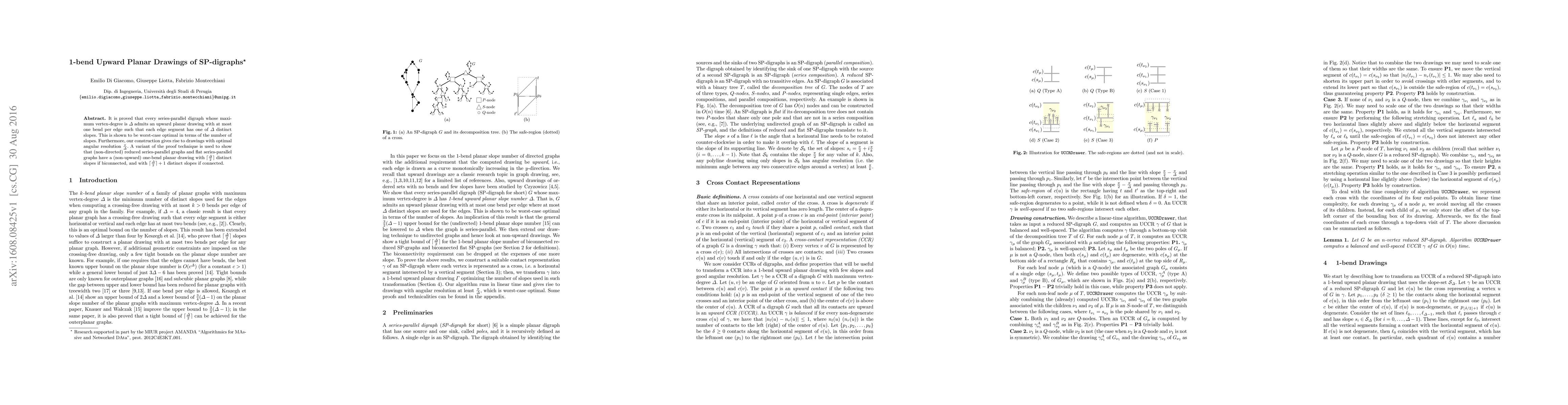 The research presents a worst-case optimal solution for 1-bend upward planar drawings of SP-digraphs, extends the findings to non-directed reduced series-parallel graphs and flat series-parallel graphs, and proposes an extension to construct 1-bend planar drawings of biconnected SP-graph subfamilies using a reduced number of slopes.
