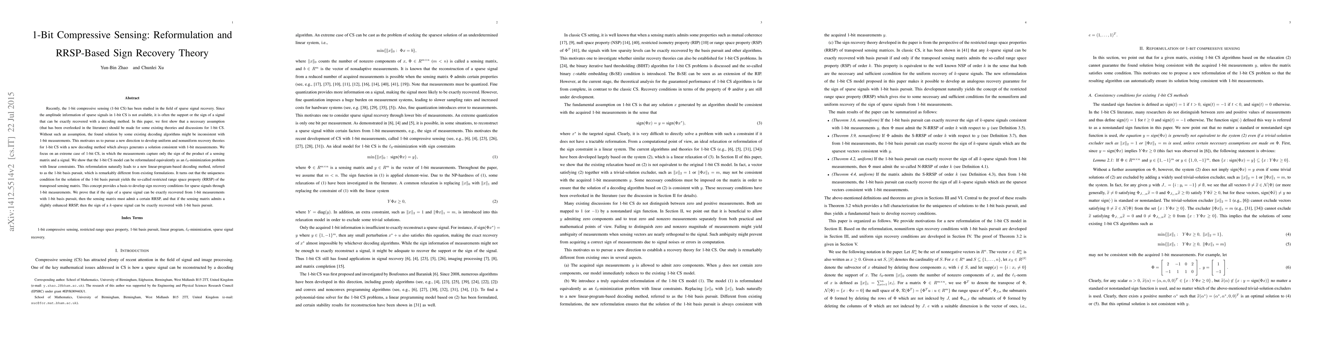This paper addresses the 1-bit compressive sensing (1-bit CS) problem, highlighting the need for a necessary assumption in existing theories. It proposes a new decoding method, 1-bit basis pursuit, which reformulates the problem into an $\ell_0$-minimization with linear constraints, and establishes the restricted range space property (RRSP) for exact sign recovery of sparse signals from 1-bit measurements.