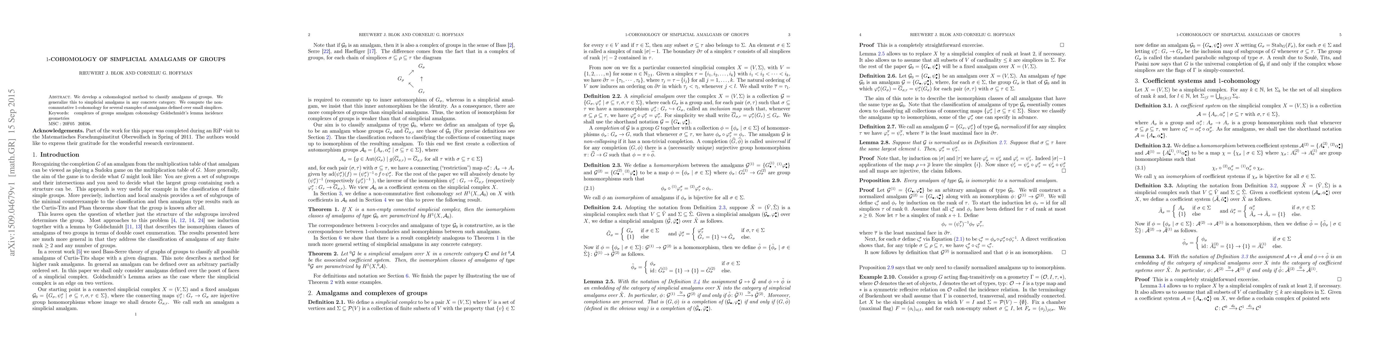 This paper introduces a cohomological method for classifying simplicial amalgams of groups and generalizes the approach to any concrete category. It computes the non-commutative 1-cohomology for various examples of such amalgams defined over small simplices.