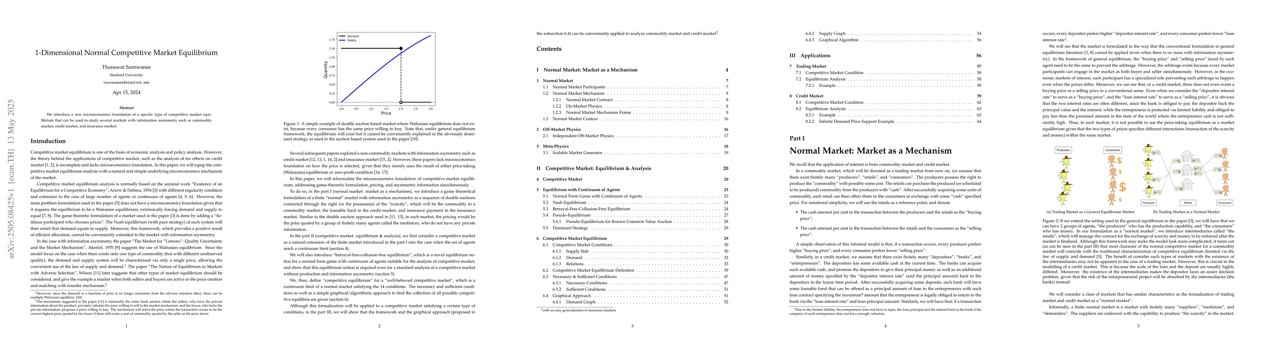 The paper introduces a novel microeconomic foundation for a specific type of competitive market equilibrium, applicable to markets with information asymmetry like commodity, credit, and insurance markets.