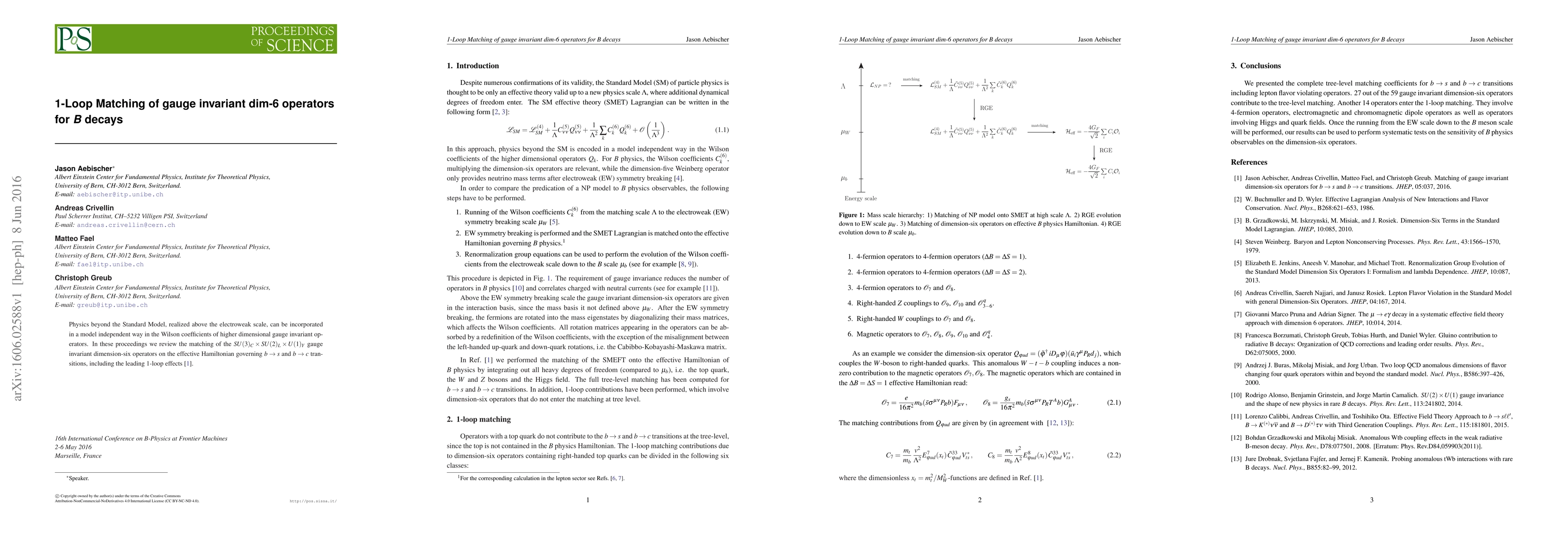 Researchers reviewed the matching of gauge invariant dim-6 operators in b decays, focusing on 1-loop effects that incorporate physics beyond the Standard Model. They aim to model these transitions using higher-dimensional operators for a more comprehensive understanding.