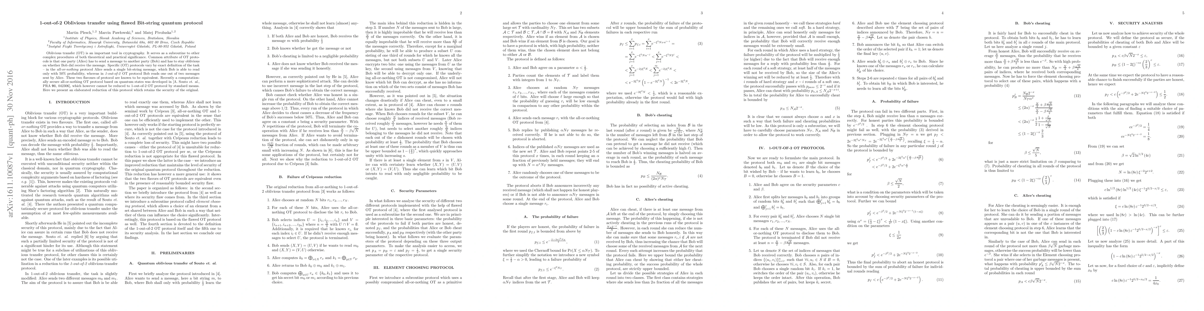 This paper presents a secure reduction of a quantum-based all-or-nothing oblivious transfer protocol to a 1-out-of-2 oblivious transfer protocol, maintaining the original protocol's security despite flaws in the bit-string quantum protocol. This advancement enhances the applicability of quantum oblivious transfer in cryptographic applications.