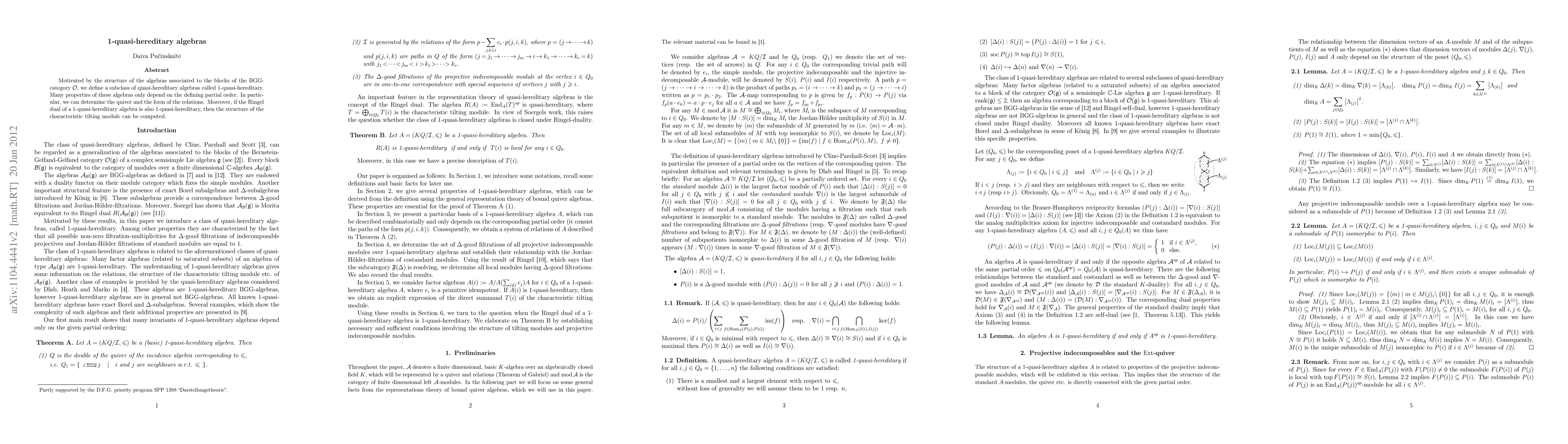 This paper defines 1-quasi-hereditary algebras, a subclass of quasi-hereditary algebras motivated by BGG-category O blocks. It determines their quiver and relations based on a defining partial order and explores the structure of their characteristic tilting modules when the Ringel dual shares the same quasi-hereditary property.