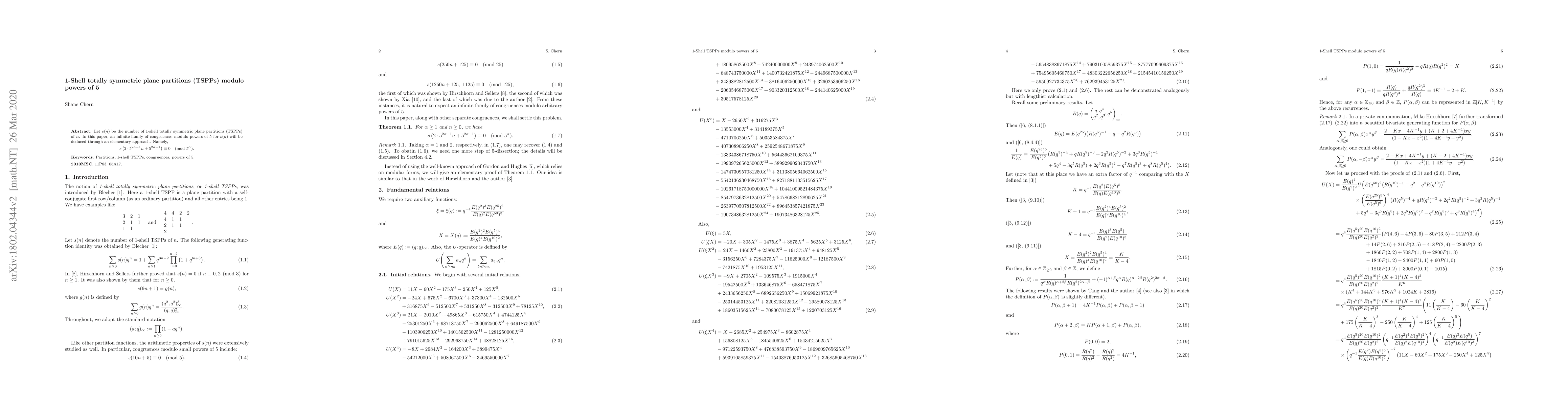 This paper deduces an infinite family of congruences modulo powers of 5 for the number of 1-shell totally symmetric plane partitions, showing that $s\left(2\cdot 5^{2\alpha-1}n+5^{2\alpha-1}\right)$ is congruent to 0 modulo $5^{\alpha}$ through an elementary approach.