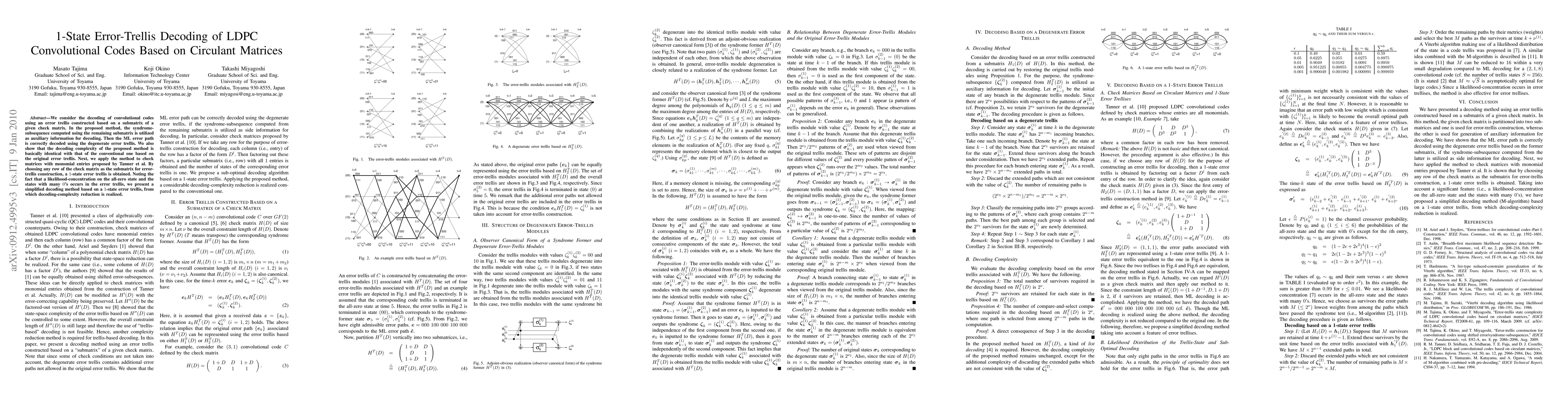 This paper proposes a 1-state error-trellis decoding method for LDPC convolutional codes using circulant matrices, which utilizes syndrome-subsequences for decoding. The method achieves similar complexity to conventional methods while simplifying the decoding process based on likelihood concentration.