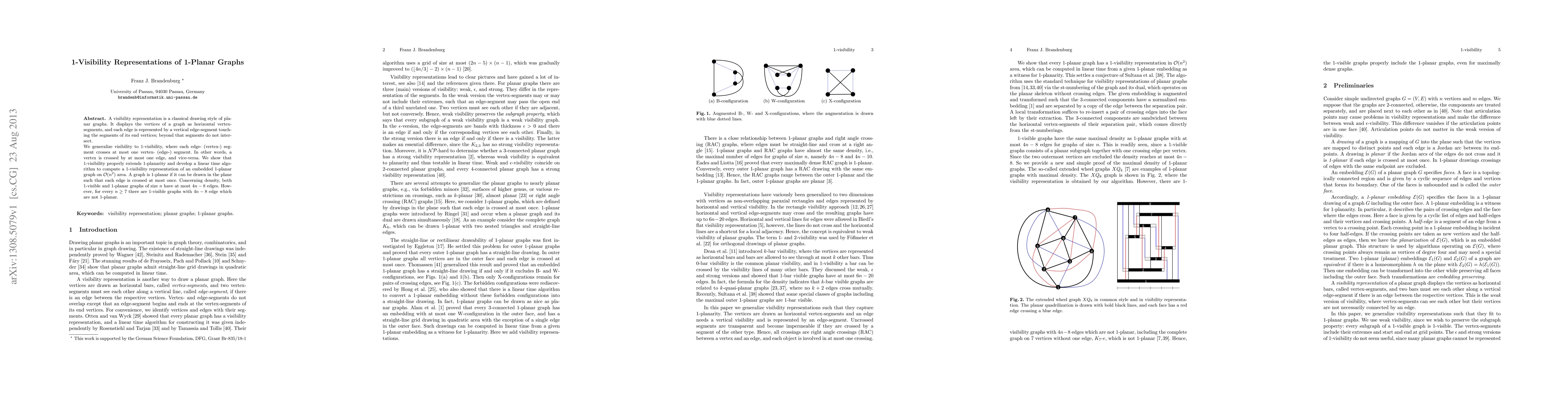 This paper explores 1-visibility representations of 1-planar graphs, extending classical visibility representations where each edge crosses at most one vertex and vice versa. The authors present a linear time algorithm to compute a 1-visibility representation for embedded 1-planar graphs on O(n^2) area, highlighting the distinction between 1-visible and 1-planar graphs in terms of density and structure.