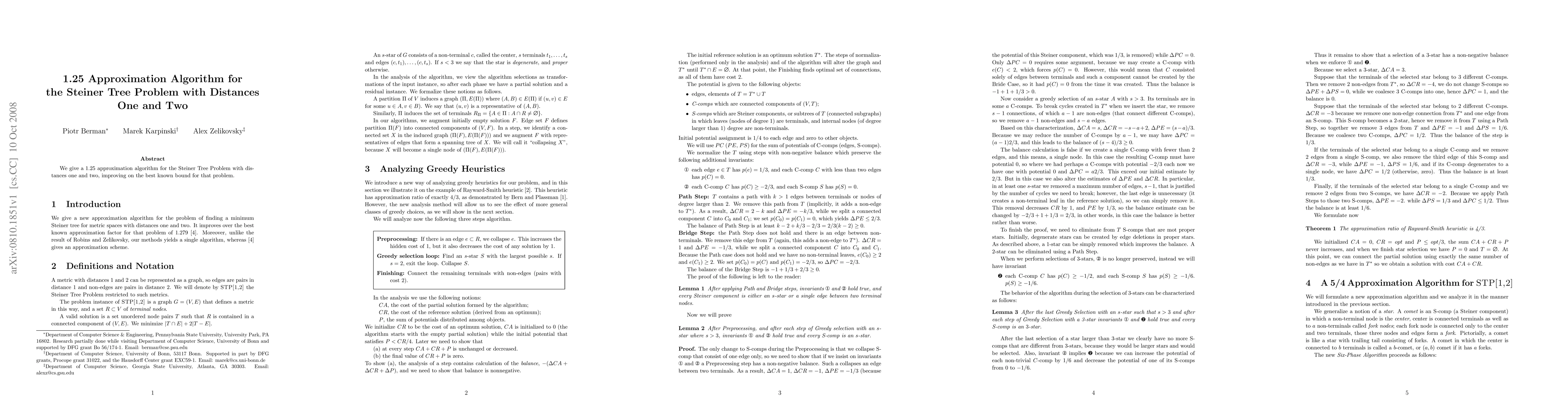 A new algorithm improves the Steiner Tree Problem's 1.25 approximation bound, offering a more efficient solution for finding optimal tree structures in network settings.