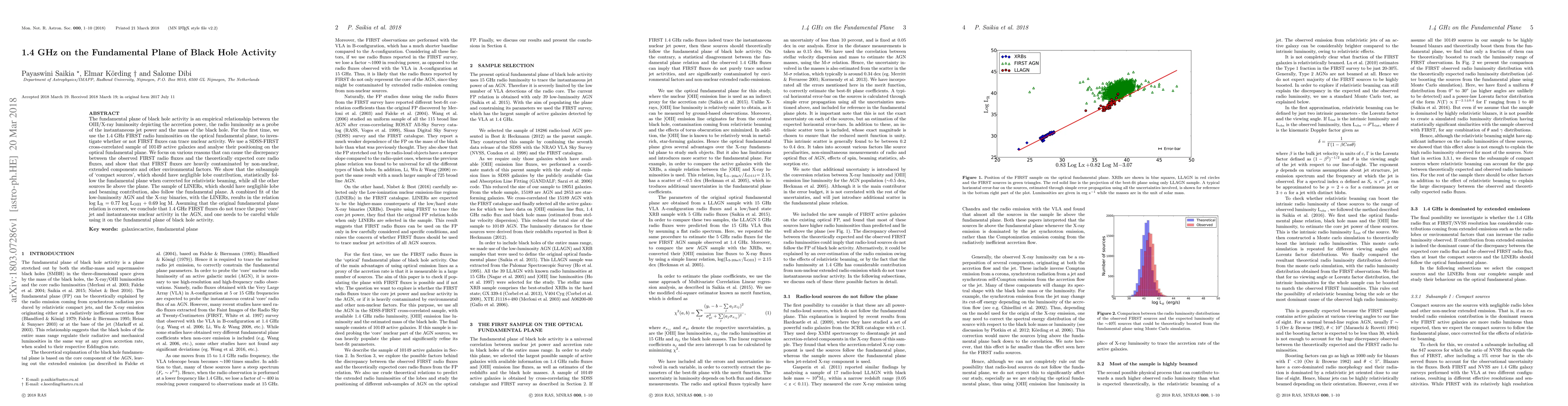 This study investigates the relationship between 1.4 GHz radio luminosities from the FIRST survey and the fundamental plane of black hole activity, finding that these radio fluxes are heavily influenced by non-nuclear components and environmental factors. Only 'compact sources' and LINERs, which have minimal lobe and beaming contributions, align with the fundamental plane when corrected, suggesting that 1.4 GHz FIRST fluxes do not accurately reflect pure core jet and nuclear activity.