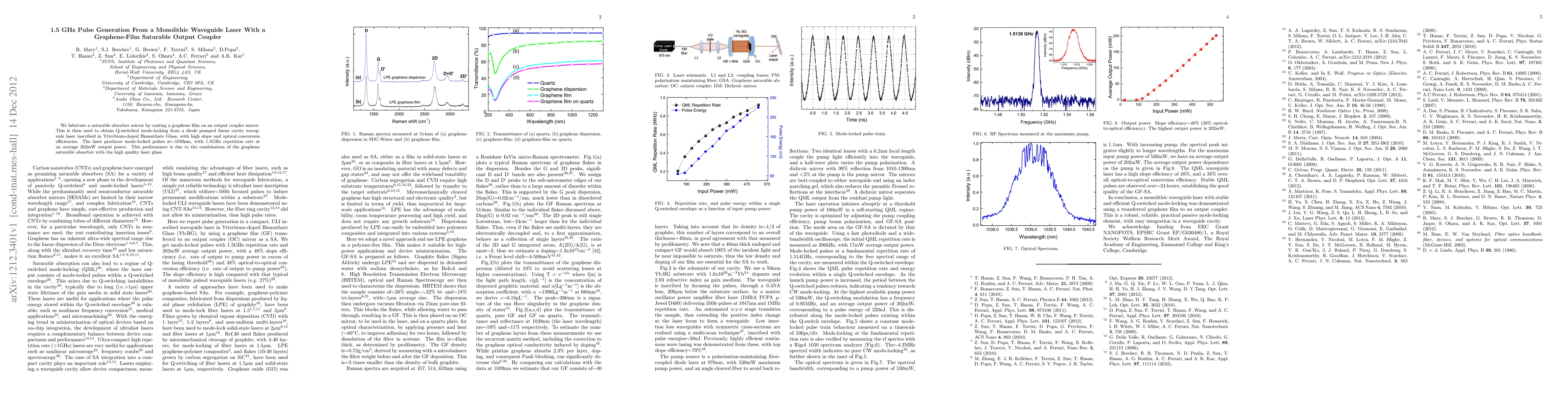 This paper details the creation of a 1.5 GHz pulse-generating laser using a graphene-film saturable output coupler, achieving high efficiency and a 1.5 GHz repetition rate with 202 mW average power, thanks to the combination of the graphene absorber and Ytterbium-doped Bismuthate Glass.