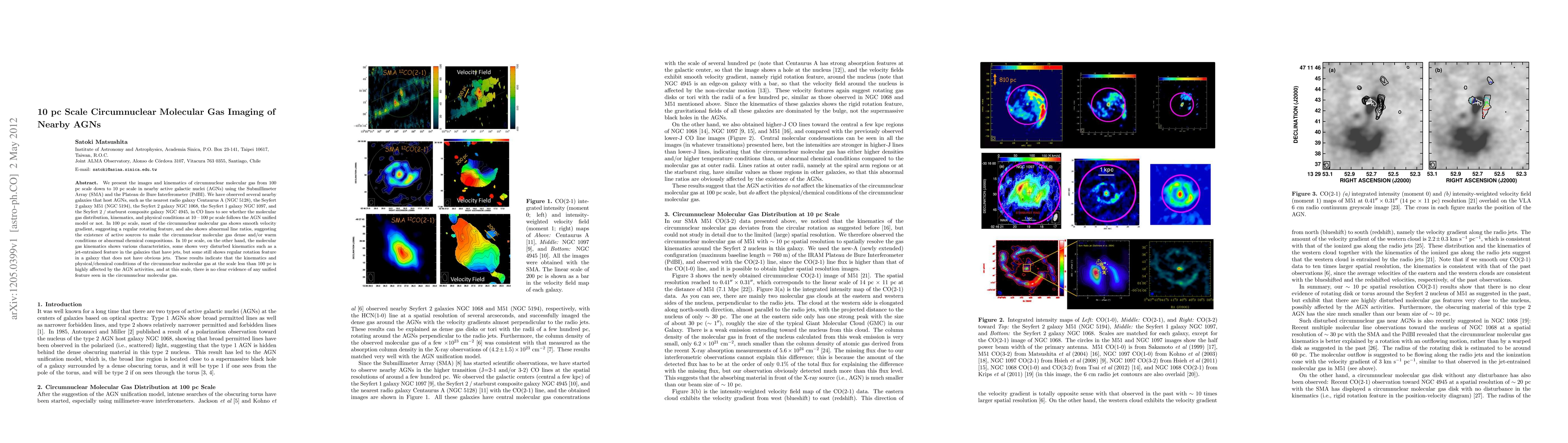 This study uses SMA and PdBI to image circumnuclear molecular gas in nearby AGNs at scales from 10 to 100 pc, finding that while gas at 100 pc shows regular rotation and abnormal line ratios, gas at 10 pc exhibits varied kinematics influenced by AGN activity, with no unified feature observed.