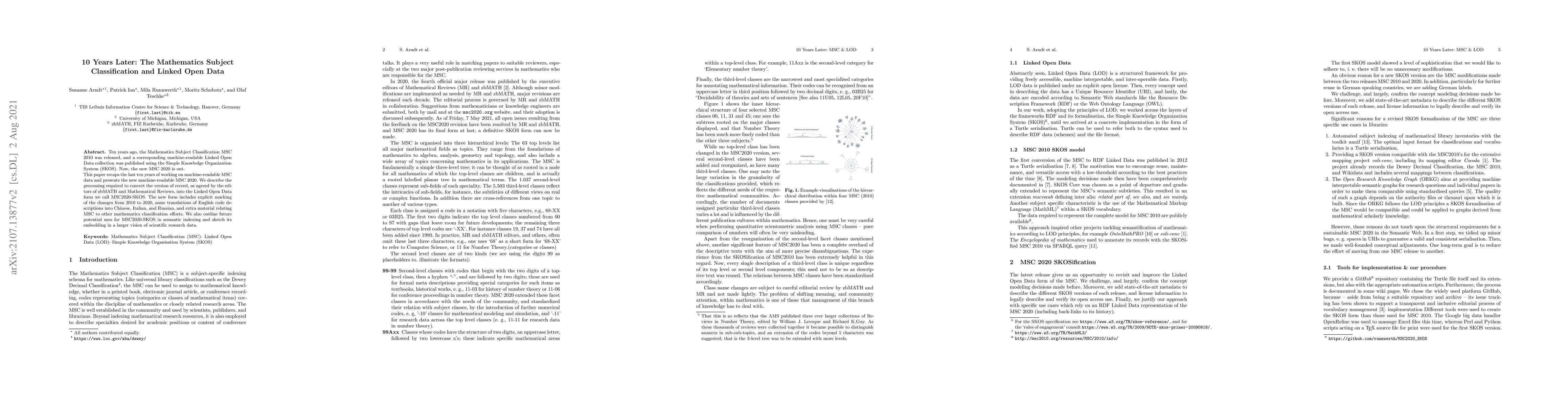 Ten years ago, the Mathematics Subject Classification MSC 2010 was released, and a corresponding machine-readable Linked Open Data collection was published using the Simple Knowledge Organization System (SKOS). Now, the new MSC 2020 is out. This paper recaps the last ten years of working on machine-readable MSC data and presents the new machine-readable MSC 2020. We describe the processing required to convert the version of record, as agreed by the editors of zbMATH and Mathematical Reviews, into the Linked Open Data form we call MSC2020-SKOS. The new form includes explicit marking of the changes from 2010 to 2020, some translations of English code descriptions into Chinese, Italian, and Russian, and extra material relating MSC to other mathematics classification efforts. We also outline future potential uses for MSC2020-SKOS in semantic indexing and sketch its embedding in a larger vision of scientific research data.