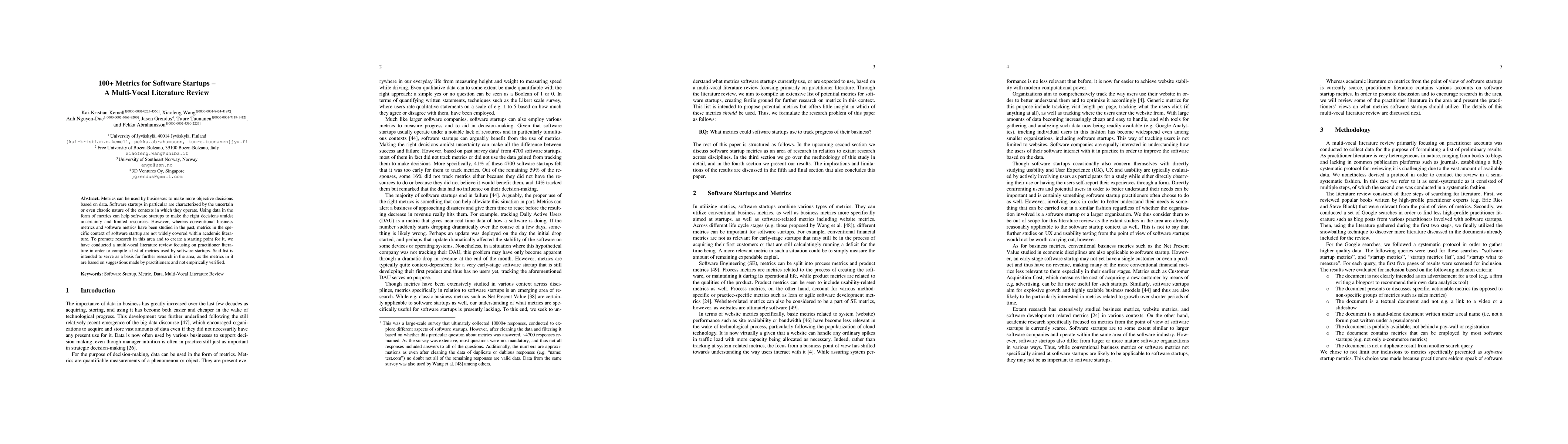 This paper conducts a multi-vocal literature review to identify over 100 metrics used by software startups, focusing on practitioner insights to guide decision-making amidst uncertainty. The compiled list aims to serve as a foundational resource for future research in this under-explored area.