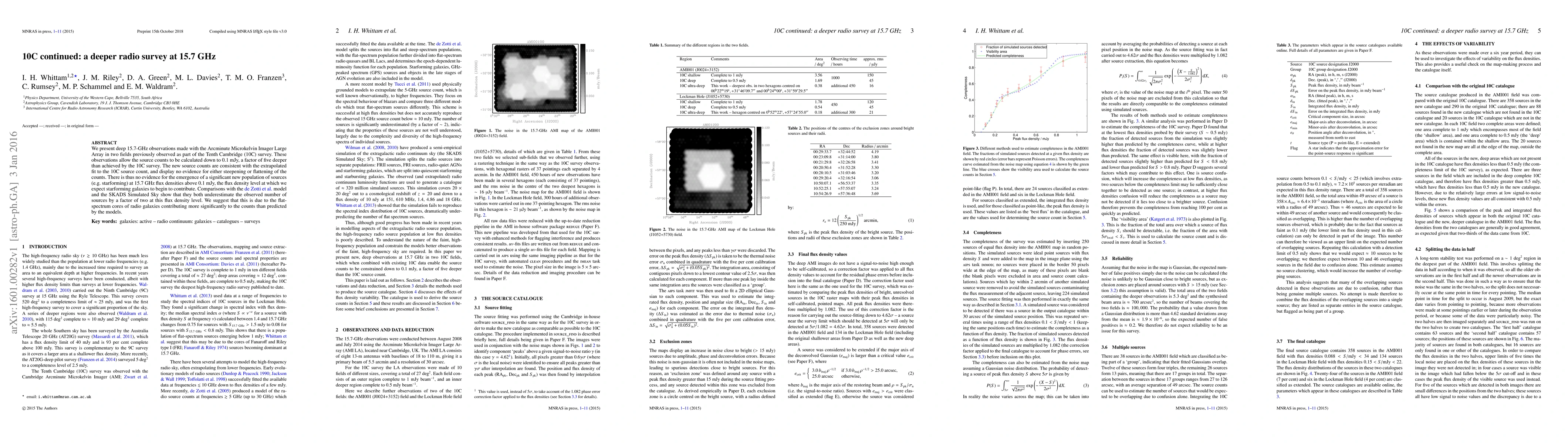 This paper reports deep 15.7-GHz observations that extend the Tenth Cambridge survey, revealing source counts down to 0.1 mJy without evidence of a new population of sources like starforming galaxies. Models underestimate the observed source counts, likely due to the contribution of flat-spectrum radio galaxies.