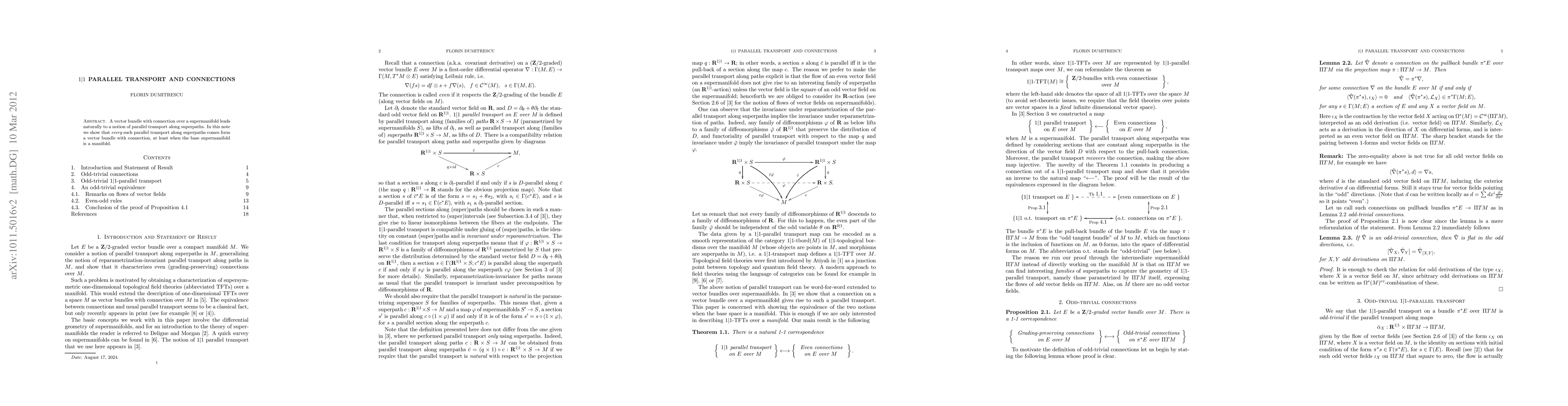 Researchers show that every parallel transport along superpaths can be represented as a vector bundle with connection on a manifold base supermanifold.