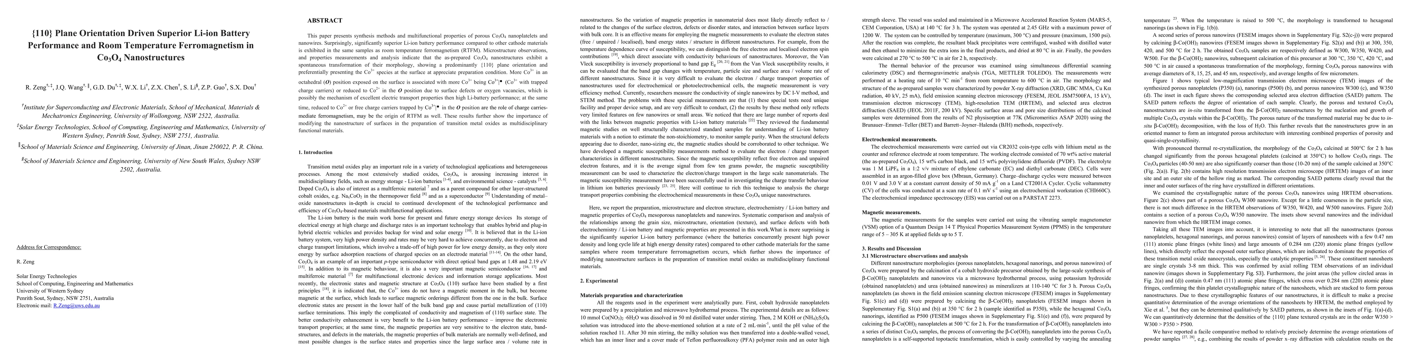 This paper presents synthesis methods and multifunctional properties of porous Co3O4 nanoplatelets and nanowires. Surprisingly, significantly superior Li-ion battery performance compared to other cathode materials is exhibited in the same samples as room temperature ferromagnetism (RTFM). Microstructure observations, and properties measurements and analysis indicate that the as-prepared Co3O4 nanostructures exhibit a spontaneous transformation of their morphology, showing a predominantly {110} plane orientation and preferentially presenting the Co3+ species at the surface at appreciate preparation condition. More Co3+ in an octahedral (O) position exposed on the surface is associated with more Co3+ being Co3+|\cdot (Co3+ with trapped charge carriers) or reduced to Co2+ in the O position due to surface defects or oxygen vacancies, which is possibly the mechanism of excellent electric transport properties then high Li-battery performance; at the same time, reduced to Co2+ or free charge carriers trapped by Co3+|\cdot in the O position are the role of charge carries- mediate ferromagnetism, may be the origin of RTFM as well. These results further show the importance of modifying the nanostructure of surfaces in the preparation of transition metal oxides as multidisciplinary functional materials.