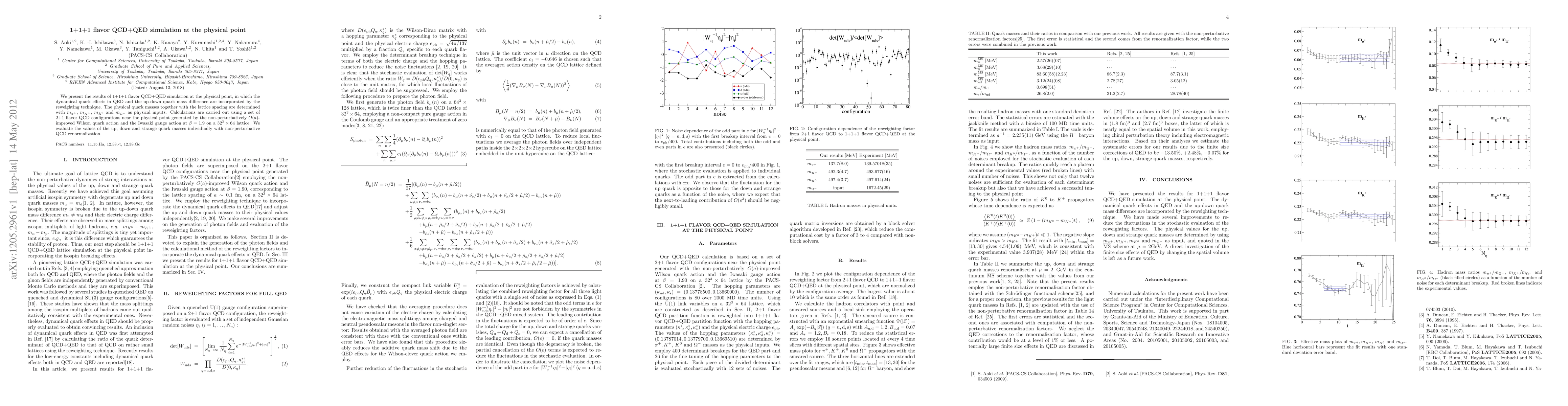 Researchers simulated QCD+QED interactions using a 1+1+1 flavor lattice, incorporating quark mass differences and dynamical effects, to improve understanding of particle physics at the physical point.