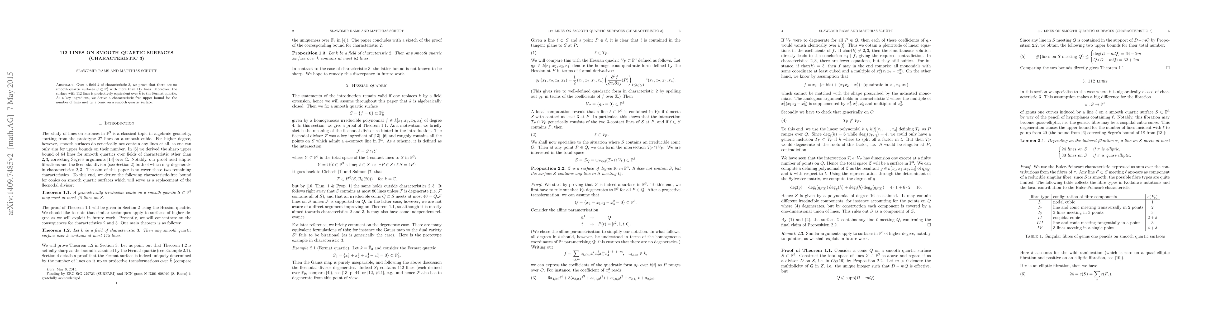 Summary: The paper demonstrates that in characteristic 3, no smooth quartic surface in projective 3-space can contain more than 112 lines, with the maximum configuration being projectively equivalent to the Fermat quartic. It also establishes a characteristic-free upper bound for lines intersecting a quadric on such surfaces.
