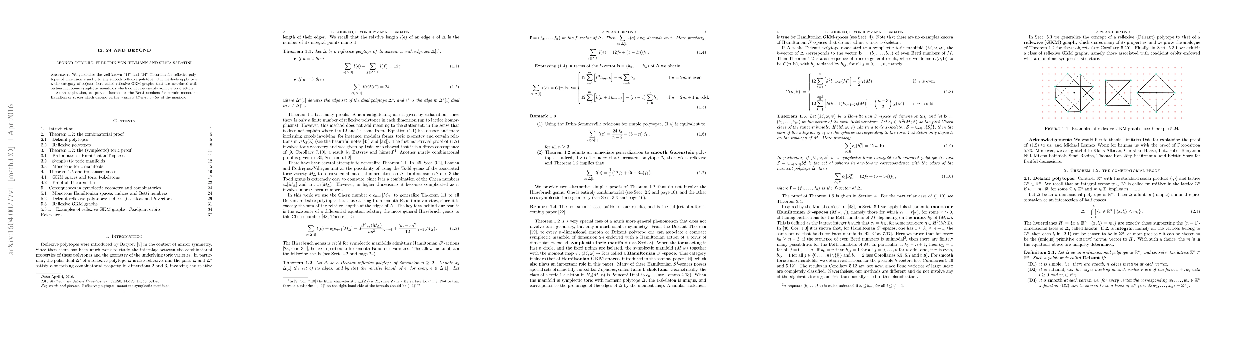 We generalize the well-known "12" and "24" Theorems for reflexive polytopes of dimension 2 and 3 to any smooth reflexive polytope. Our methods apply to a wider category of objects, here called reflexive GKM graphs, that are associated with certain monotone symplectic manifolds which do not necessarily admit a toric action. As an application, we provide bounds on the Betti numbers for certain monotone Hamiltonian spaces which depend on the minimal Chern number of the manifold.