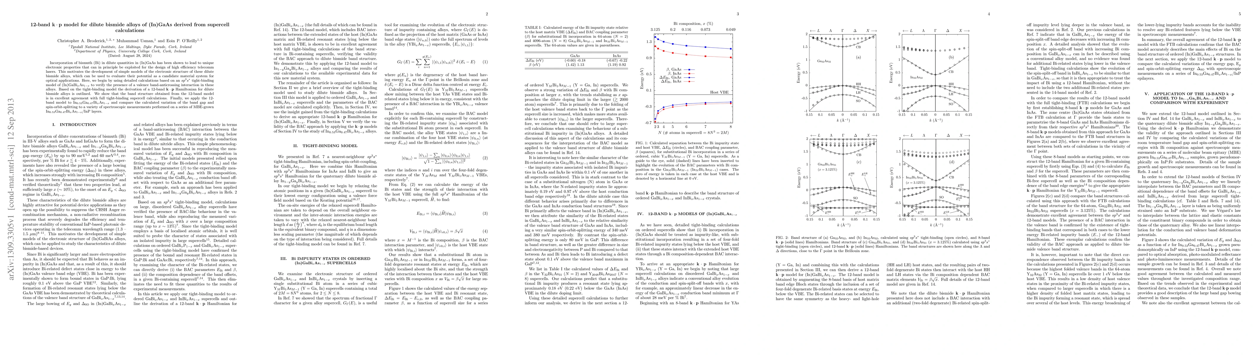 This paper develops a 12-band $\textbf{k}\cdot\textbf{p}$ model for dilute bismide alloys of (In)GaAs, derived from supercell calculations, to study their unique electronic properties for potential high-efficiency telecom lasers. The model accurately reproduces the band structure and compares well with spectroscopic measurements.