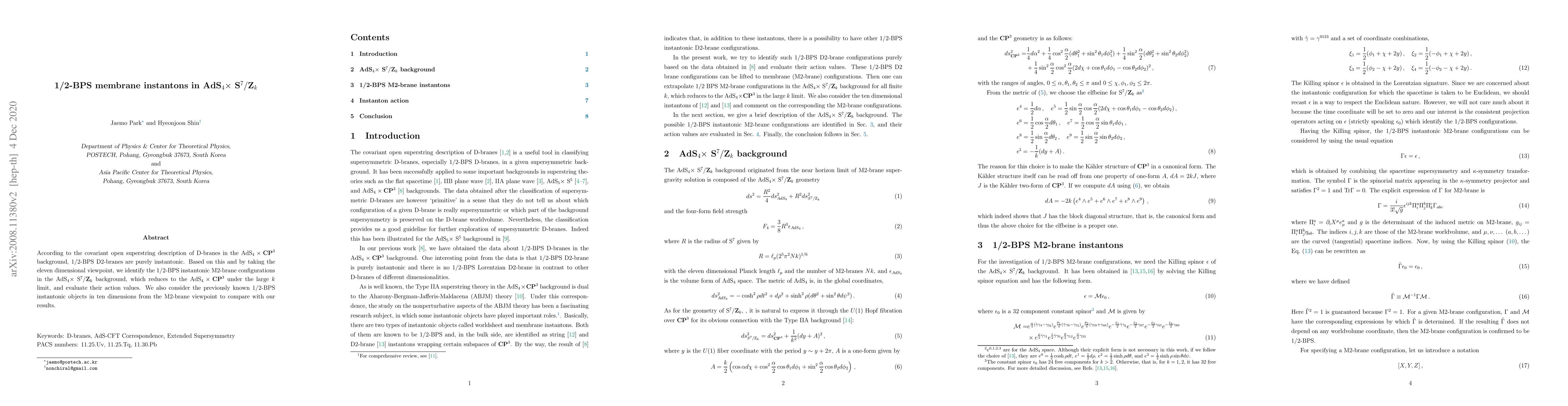 This paper identifies and evaluates the action values of 1/2-BPS instantonic M2-brane configurations in the AdS$_4 \times$S$^7 / \mathbf{Z}_k$ background, comparing these findings to previously known instantonic objects in ten dimensions from an M2-brane perspective.