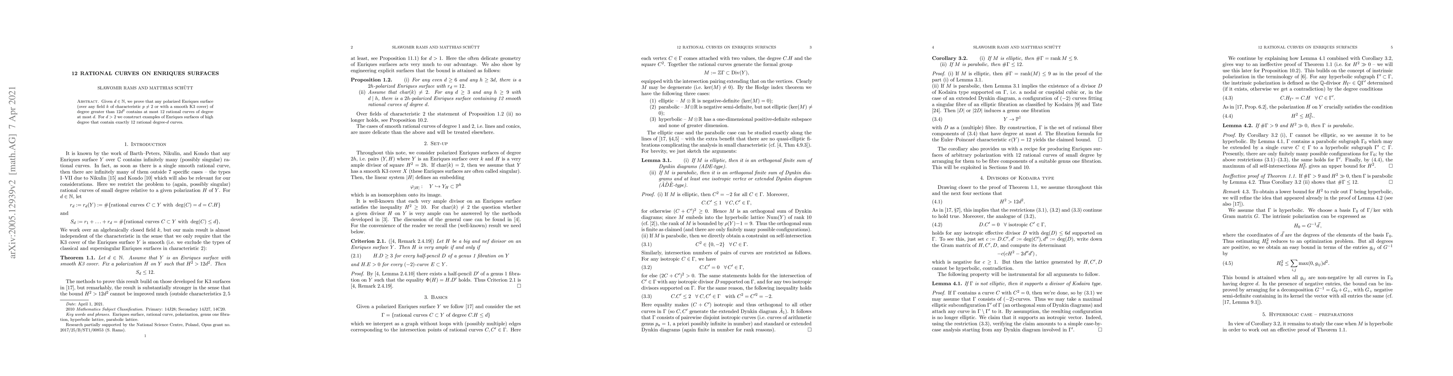 The paper proves that any polarized Enriques surface with degree greater than 12d^2 contains no more than 12 rational curves of degree at most d, and provides examples for d>2 that contain exactly 12 such curves.