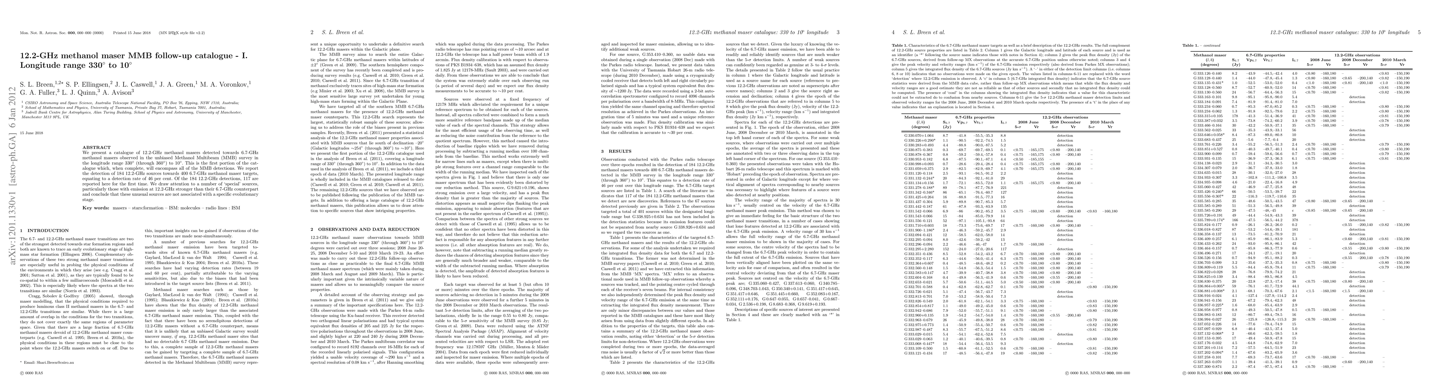 We present a catalogue of 12.2-GHz methanol masers detected towards 6.7-GHz methanol masers observed in the unbiased Methanol Multibeam (MMB) survey in the longitude range 330\circ (through 360\circ) to 10\circ. This is the first portion of the catalogue which, when complete, will encompass all of the MMB detections. We report the detection of 184 12.2-GHz sources towards 400 6.7-GHz methanol maser targets, equating to a detection rate of 46 per cent. Of the 184 12.2-GHz detections, 117 are reported here for the first time. We draw attention to a number of 'special' sources, particularly those with emission at 12.2-GHz stronger than their 6.7-GHz counterpart and conclude that these unusual sources are not associated with a specific evolutionary stage.