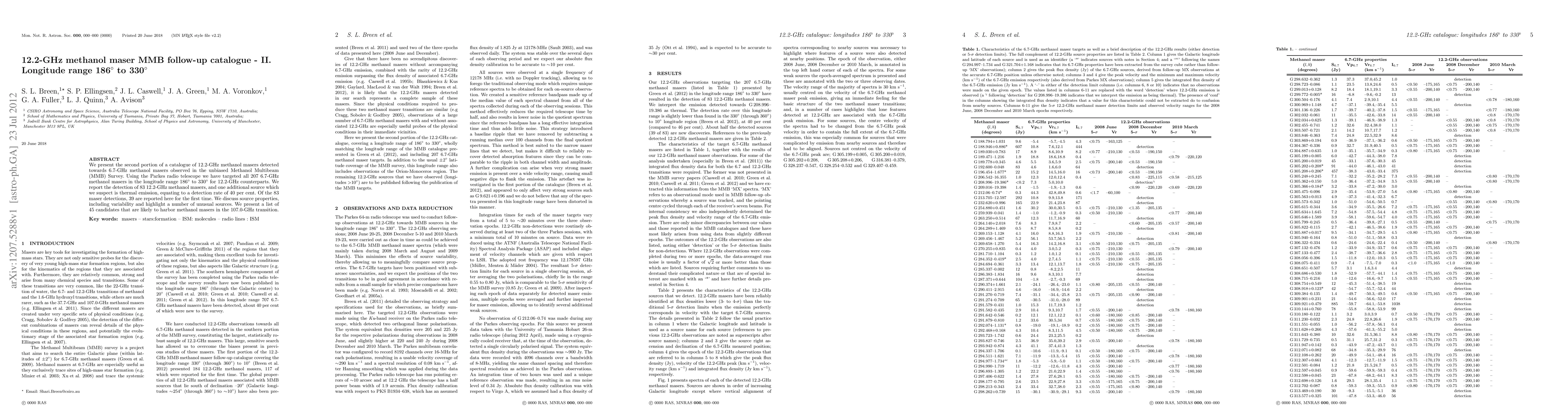 We present the second portion of a catalogue of 12.2-GHz methanol masers detected towards 6.7-GHz methanol masers observed in the unbiased Methanol Multibeam (MMB) Survey. Using the Parkes radio telescope we have targeted all 207 6.7-GHz methanol masers in the longitude range 186 to 330 degrees for 12.2-GHz counterparts. We report the detection of 83 12.2-GHz methanol masers, and one additional source which we suspect is thermal emission, equating to a detection rate of 40 per cent. Of the 83 maser detections, 39 are reported here for the first time. We discuss source properties, including variability and highlight a number of unusual sources. We present a list of 45 candidates that are likely to harbor methanol masers in the 107.0-GHz transition.