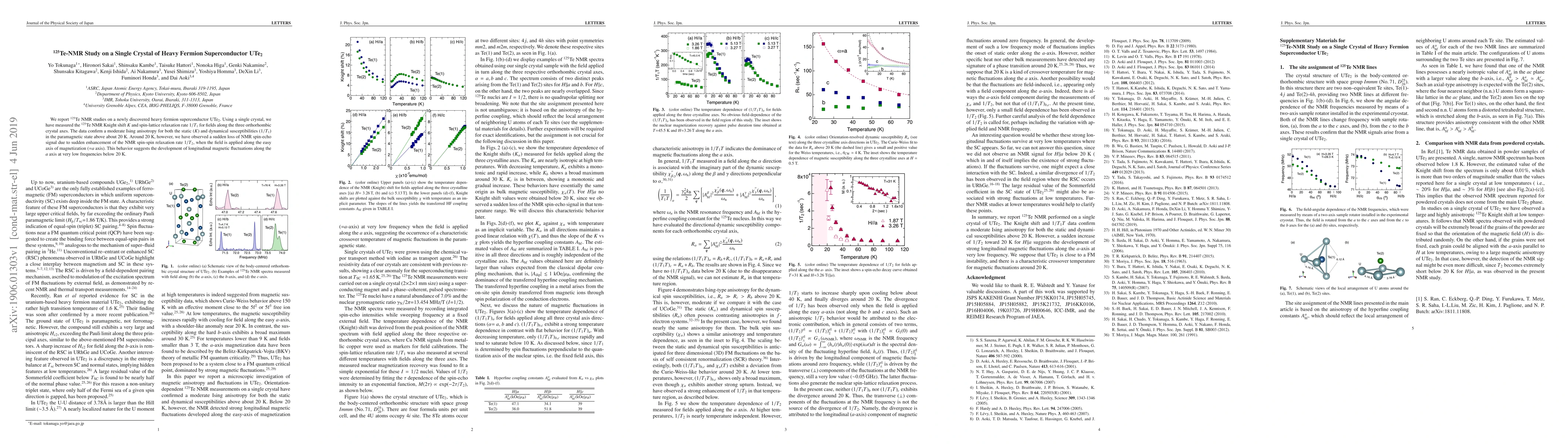 This study uses 125Te-NMR to investigate the heavy fermion superconductor UTe2, revealing moderate Ising anisotropy in both static and dynamic susceptibilities above 20 K. A sudden loss of NMR signal below 20 K indicates the emergence of longitudinal magnetic fluctuations along the a axis, suggesting complex magnetic behavior.