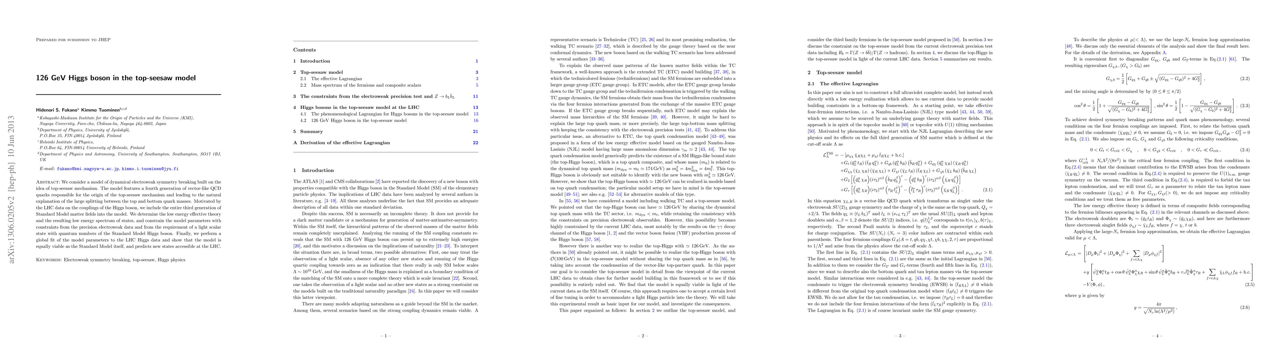 We consider a model of dynamical electroweak symmetry breaking built on the idea of top-seesaw mechanism. The model features a fourth generation of vector-like QCD quarks responsible for the origin of the top-seesaw mechanism and leading to the natural explanation of the large splitting between the top and bottom quark masses. Motivated by the LHC data on the couplings of the Higgs boson, we include the entire third generation of Standard Model matter fields into the model. We determine the low energy effective theory and the resulting low energy spectrum of states, and constrain the model parameters with constraints from the precision electroweak data and from the requirement of a light scalar state with quantum numbers of the Standard Model Higgs boson. Finally, we perform a global fit of the model parameters to the LHC Higgs data and show that the model is equally viable as the Standard Model itself, and predicts new states accessible at the LHC.