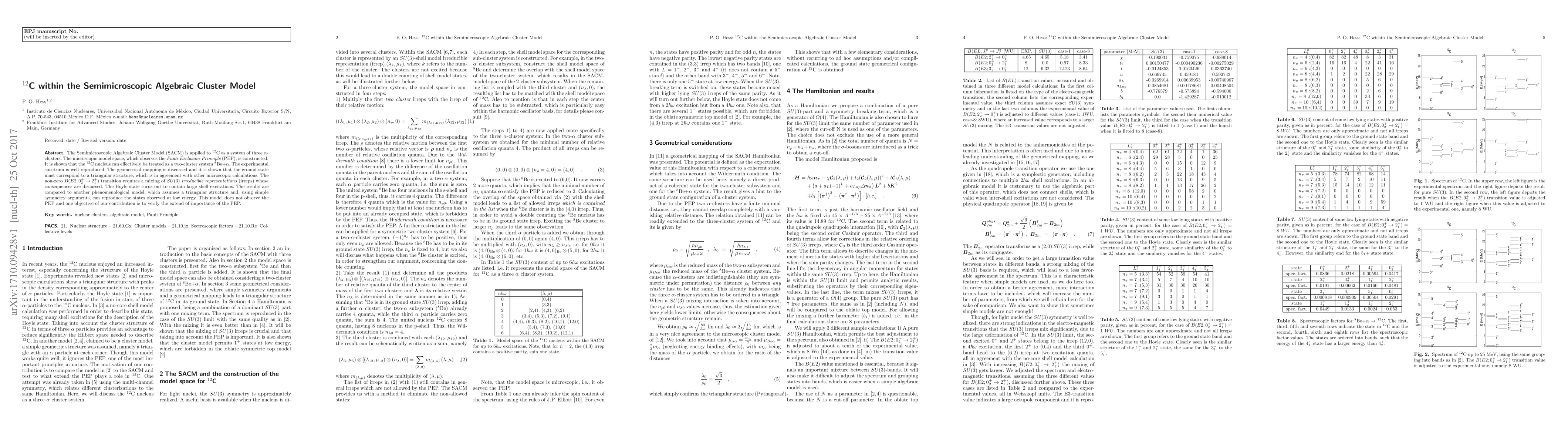 The Semimicroscopic Algebraic Cluster Model (SACM) was applied to 12C, treating it as a three-alpha cluster system. Geometrical considerations and the Pauli Exclusion Principle (PEP) were incorporated to describe the ground state as a triangular structure.