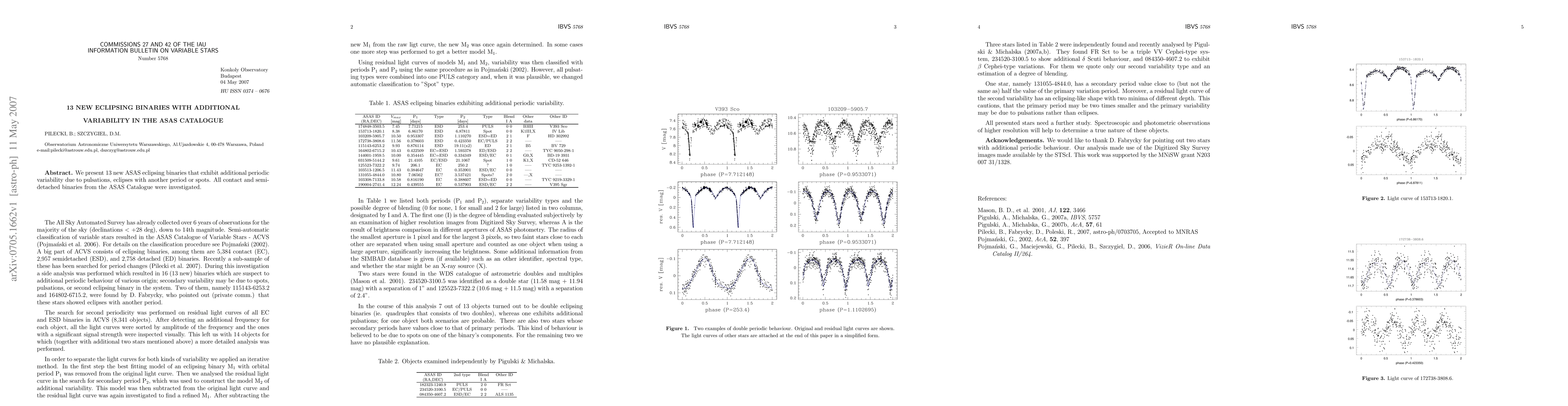 This study identifies 13 new eclipsing binaries in the ASAS Catalogue that show additional periodic variability, including pulsations, secondary eclipses, or star spots. The research thoroughly examined all contact and semi-detached binaries in the catalogue for these characteristics.