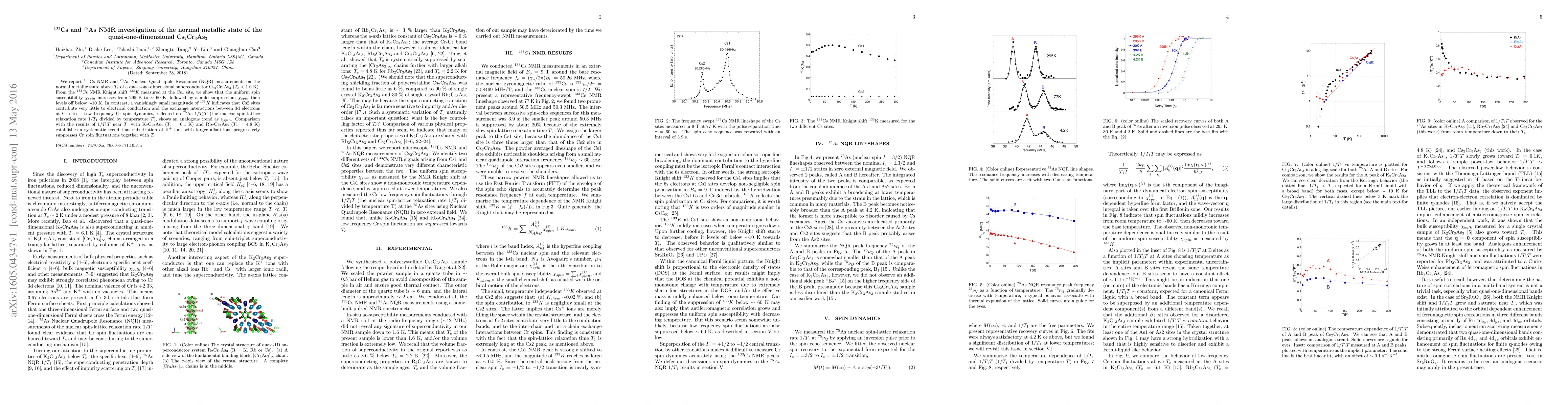 Researchers investigate Cs2Cr3As3, a quasi-one-dimensional superconductor, using NMR measurements to study the normal metallic state above its critical temperature. They find that larger alkali ions suppress Cr spin fluctuations and lower the superconducting temperature.
