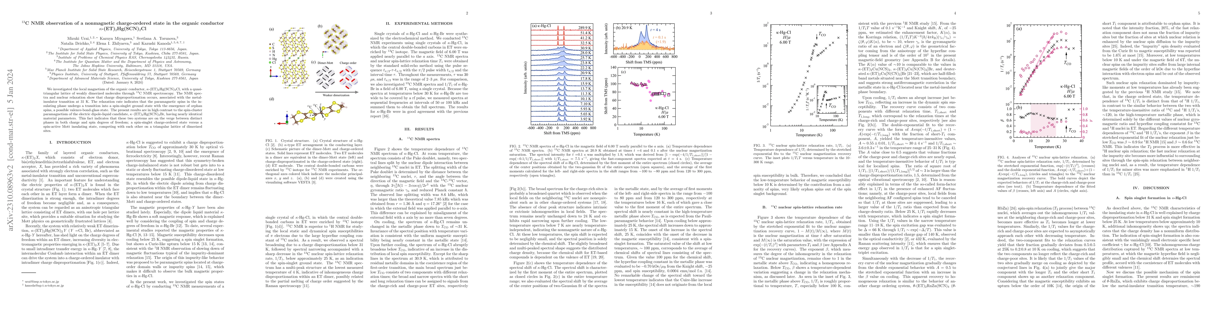 This study uses $^{13}$C NMR to observe a nonmagnetic charge-ordered state in the organic conductor $\kappa$-(ET)$_{2}$Hg(SCN)$_{2}$Cl, revealing charge disproportionation and a transition to a spin-singlet ground state with orphan spins. This contrasts with $\kappa$-(ET)$_{2}$Hg(SCN)$_{2}$Br, indicating different charge and spin states in these similar materials.